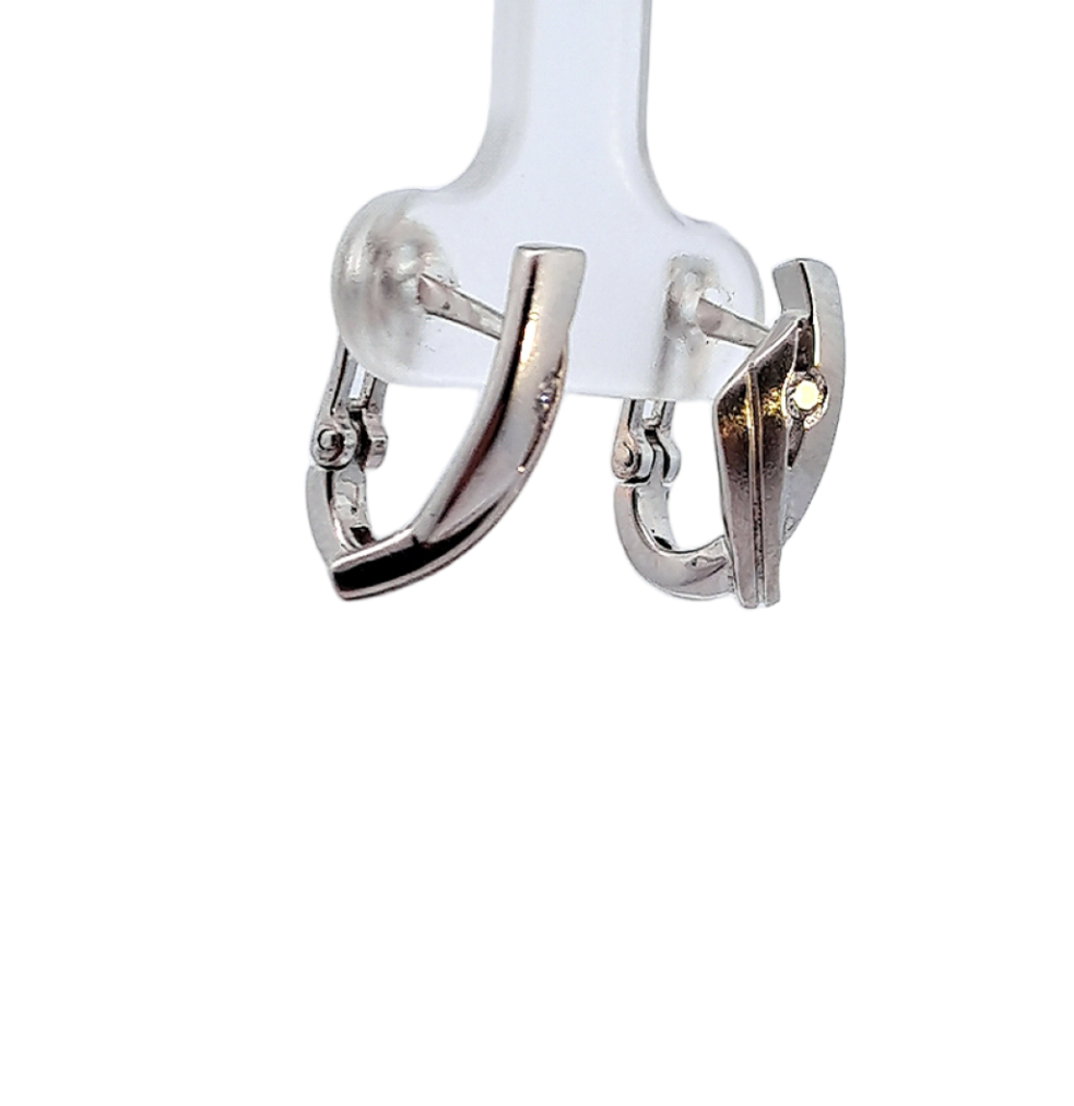 Zlaté náušnice o ryzosti 585/1000, punc labuť. Váha 3,52 g, výška 17 mm, šířka v nejširším bodě 6 mm.