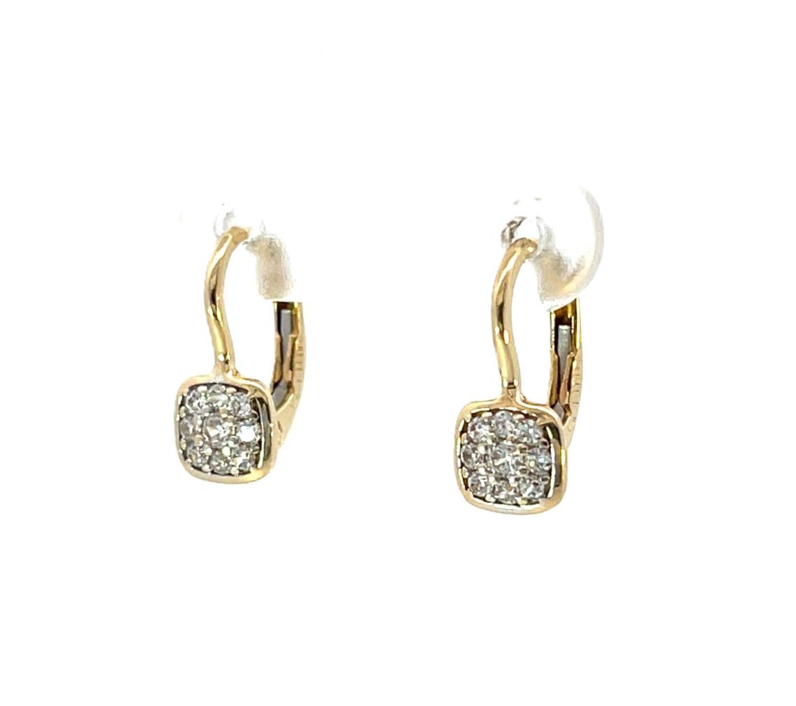 Zlaté náušnice o ryzosti 585/1000, punc labuť. Váha 1,57 g, výška 14 mm, rozměr ozdoby 6 x 6 mm.