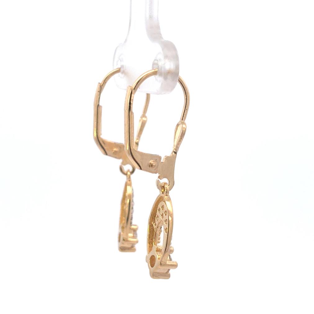 Zlaté náušnice o ryzosti 585/1000, punc labuť. Váha 2,62 g, výška 31 mm, v nejširším bodě 7 mm.