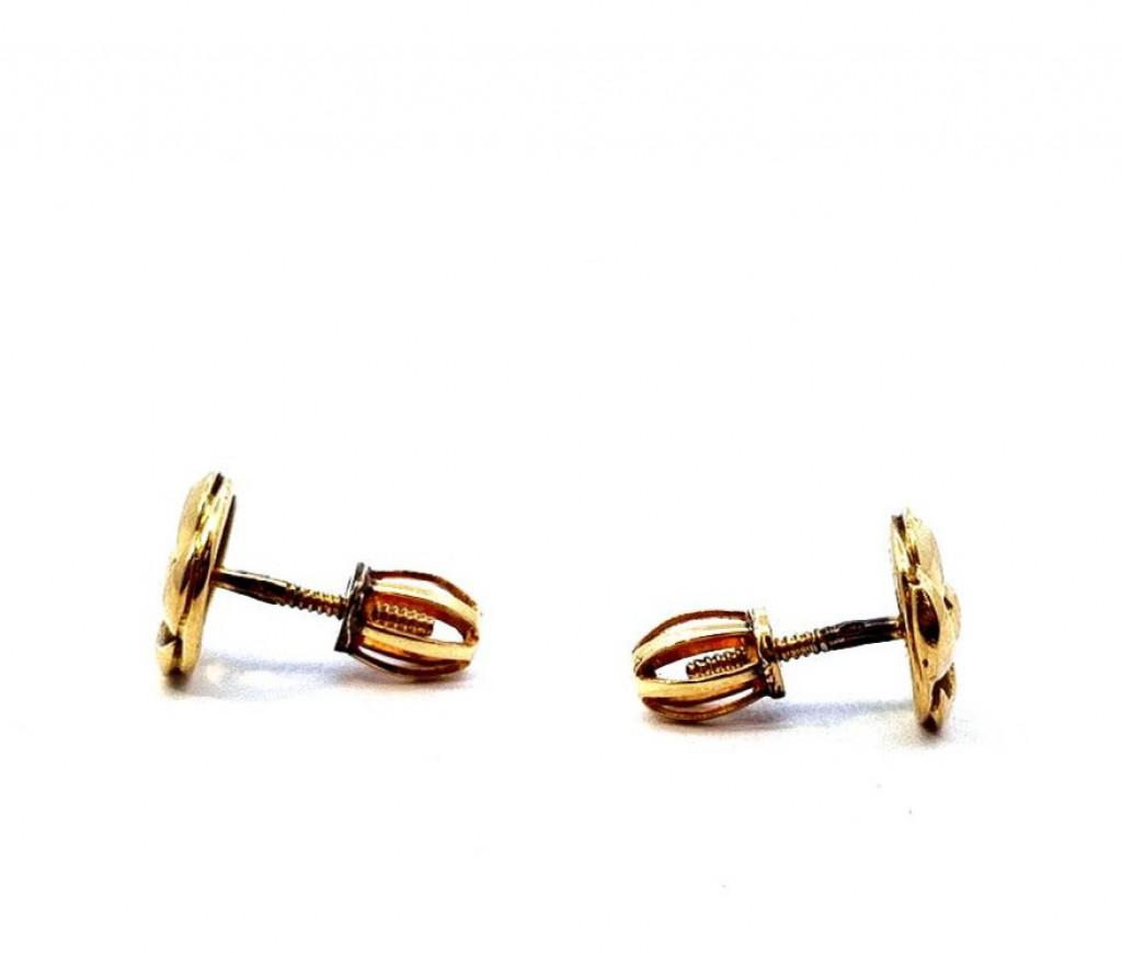 Zlaté náušnice o ryzosti 585/1000, punc čejka. Váha 2,10 g, průměr ozdoby 9 mm.