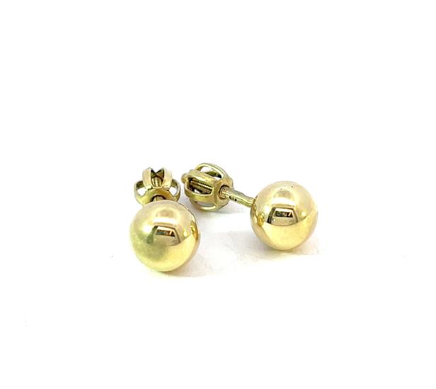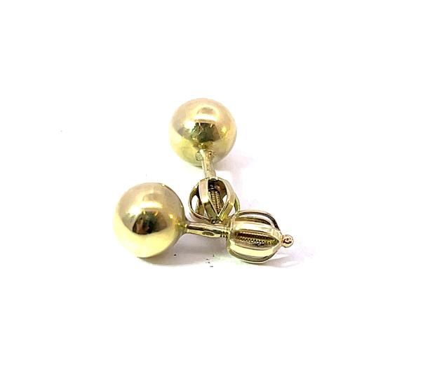 Zlaté náušnice o ryzosti 585/1000, punc labuť. Váha 1,50 g, průměr ozdoby 6,5 mm.