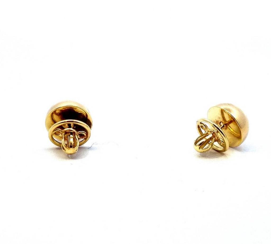 Zlaté náušnice o ryzosti 585/1000, punc labuť. Váha 4,81 g, průměr ozdoby 12 mm.