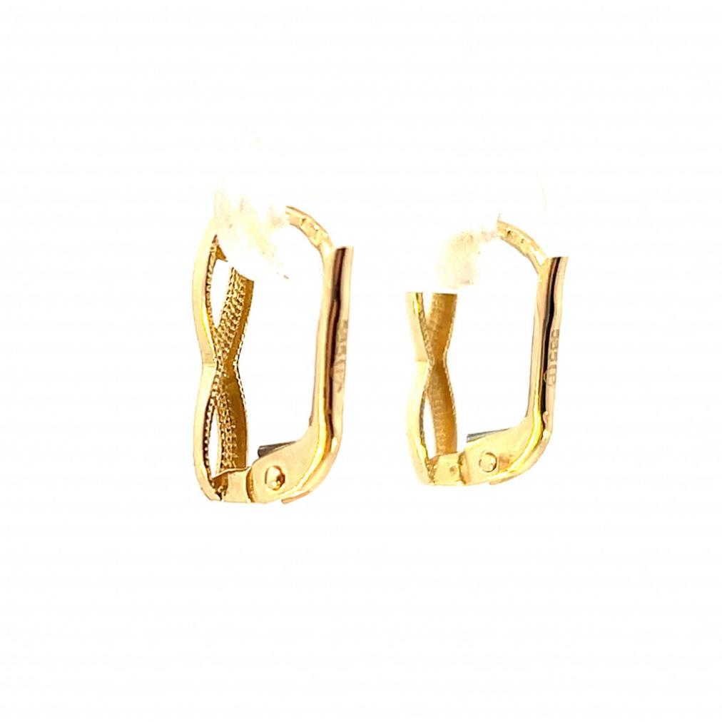 Zlaté náušnice o ryzosti 585/1000, punc labuť. Váha 1,48 g, výška 14 mm, v nejširším bodě 4 mm.