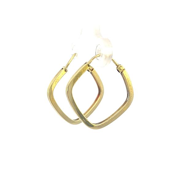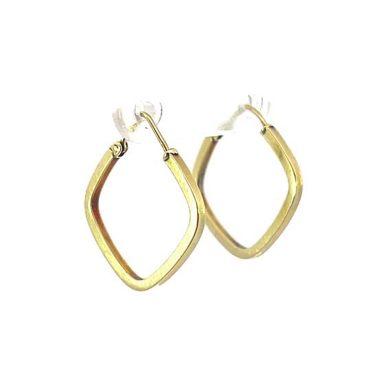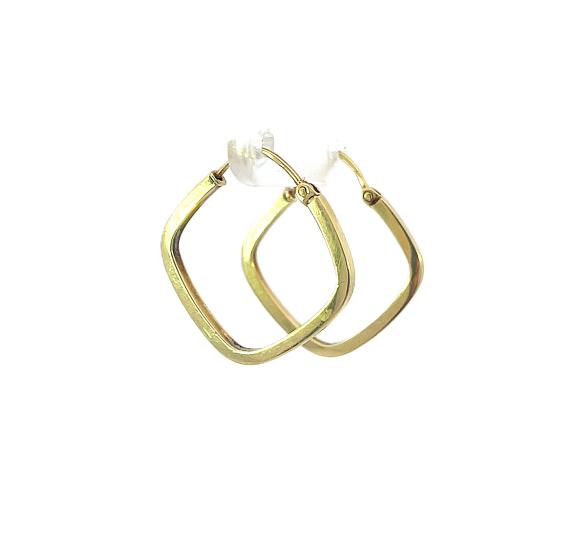 Zlaté náušnice o ryzosti 585/1000, punc labuť. Váha 1,63 g, výška 22,5 mm, v nejširším bodě 1,5 mm.