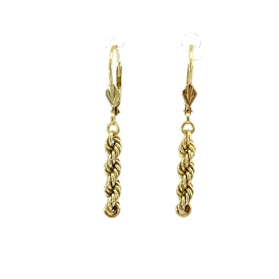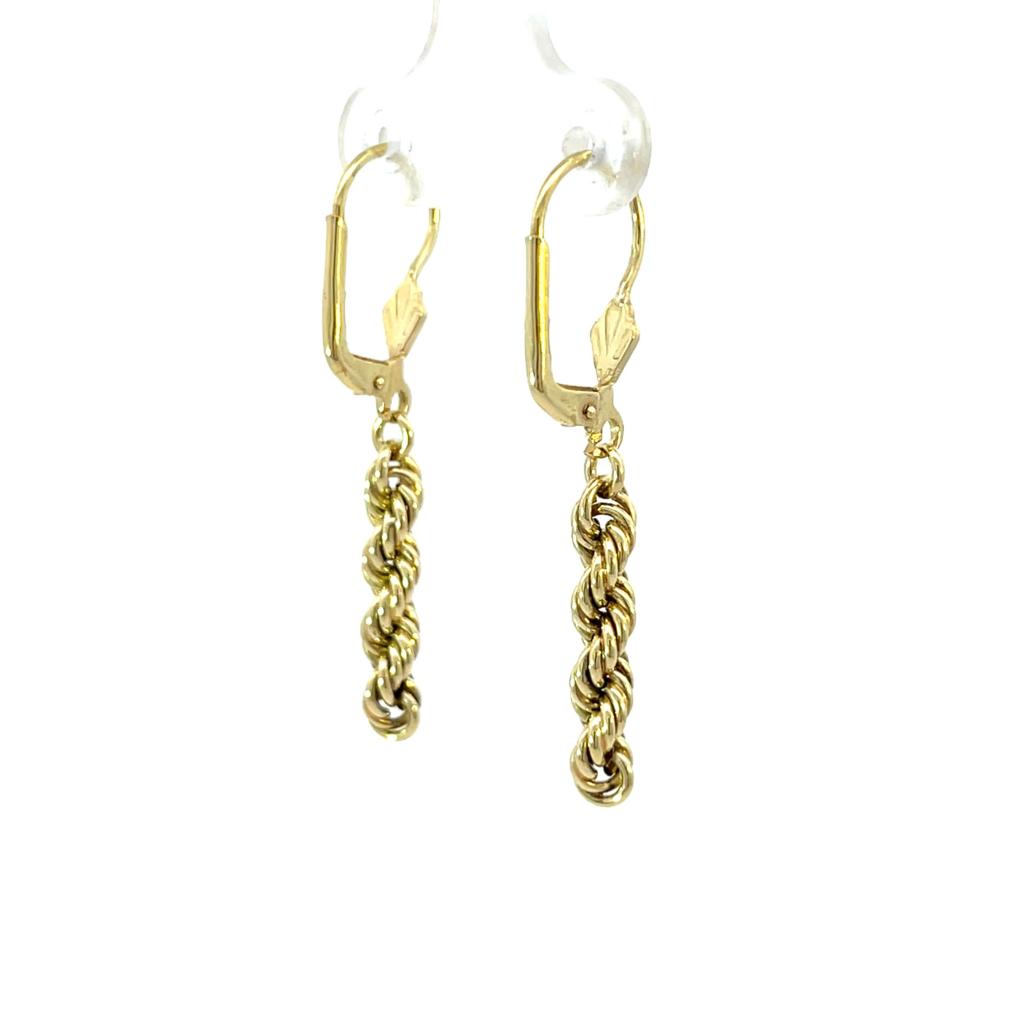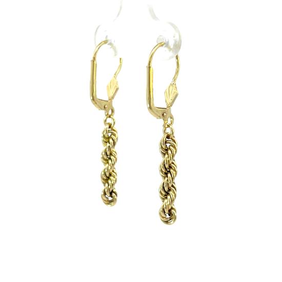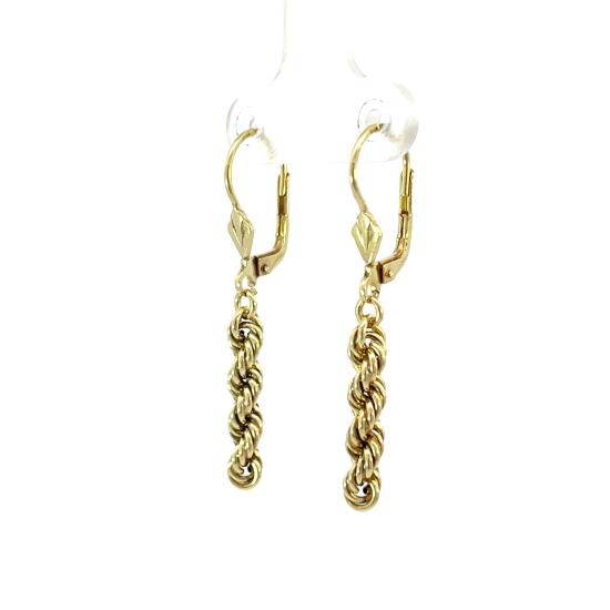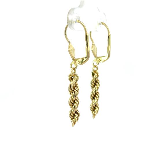 Zlaté náušnice o ryzosti 585/1000, punc labuť. Váha 2,45 g, výška 39 mm, v nejširším bodě 4 mm.
