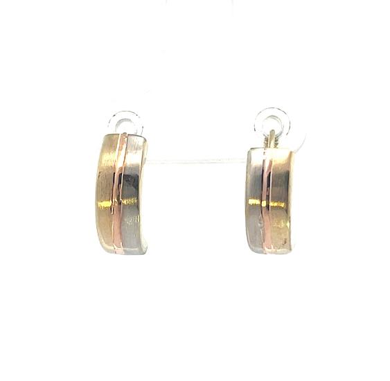 Náušnice z kombinace žlutého, bílého a růžového zlata o ryzosti 585/1000, punc labuť. Váha 1,61 g, výška 14 mm, v nejširším bodě 5 mm.