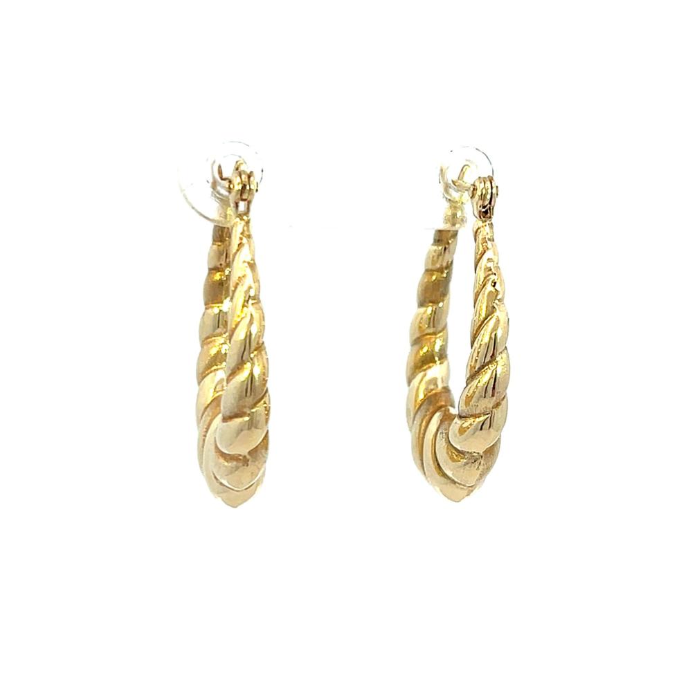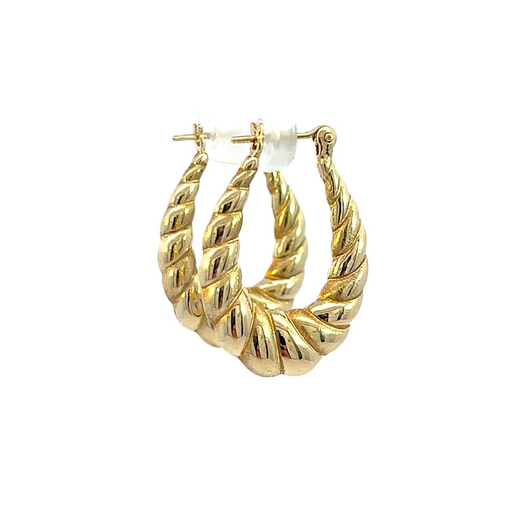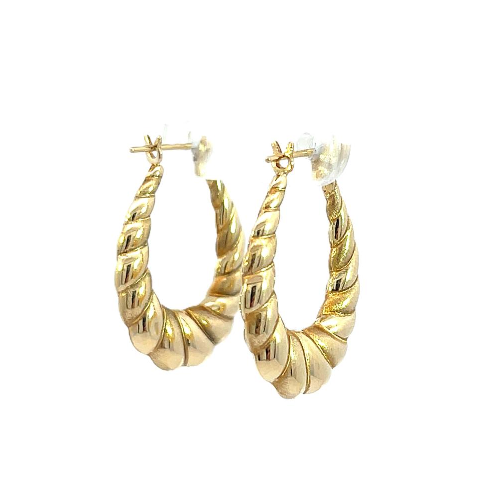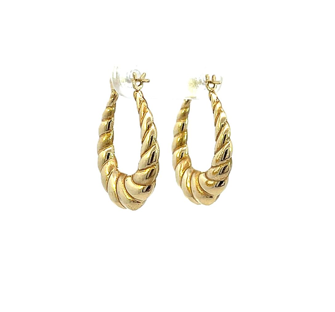 Zlaté náušnice o ryzosti 585/1000, punc labuť. Váha 1,81 g, výška 23 mm, v nejširším bodě 7 mm.
