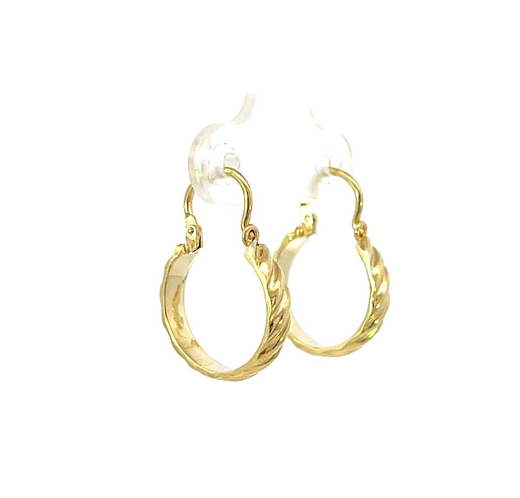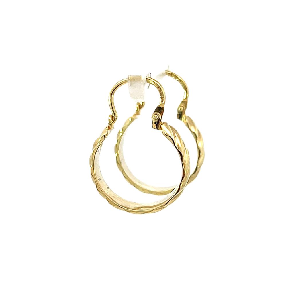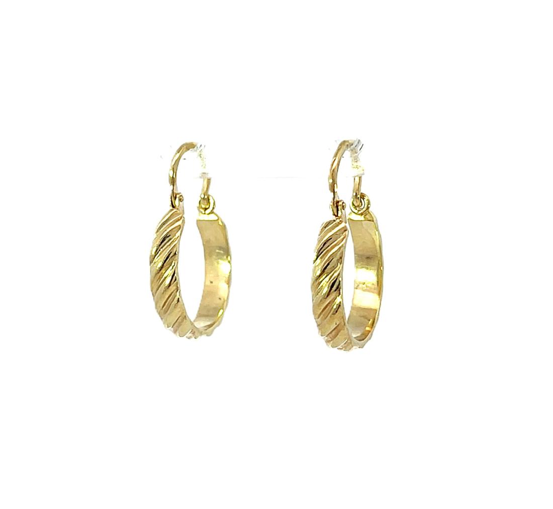 Zlaté náušnice o ryzosti 585/1000, punc čejka. Váha 2,99 g, výška 20,5 mm, v nejširším bodě 3 mm.