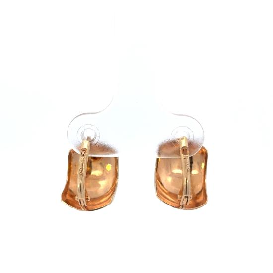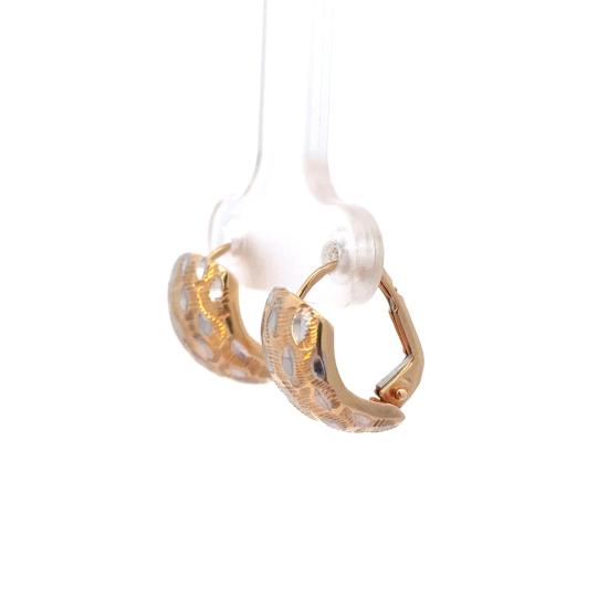 Náušnice z kombinace žlutého a bílého zlata o ryzosti 585/1000, punc labuť. Váha 1,70 g, výška 13 mm, v nejširším bodě 10 mm.