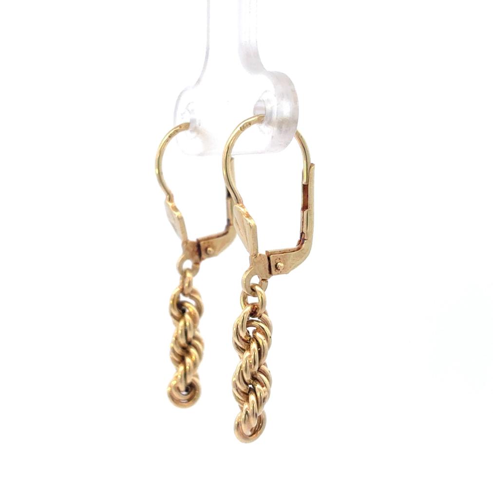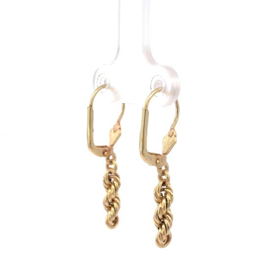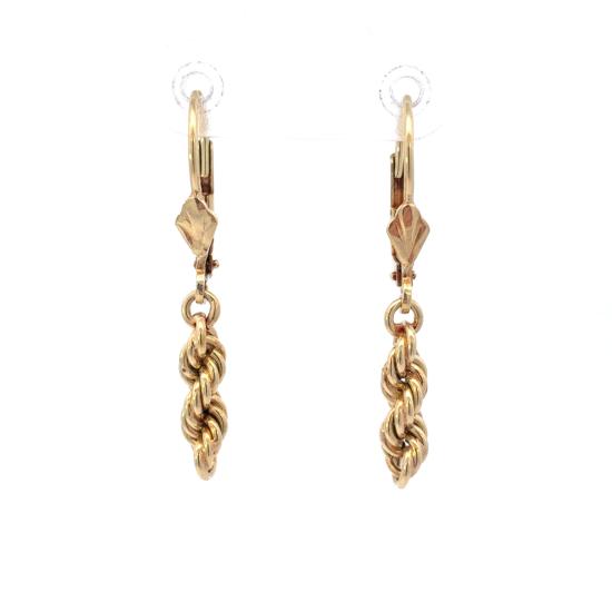 Zlaté náušnice o ryzosti 585/1000, punc labuť. Váha 1,93 g, výška 32 mm, v nejširším bodě 4 mm.