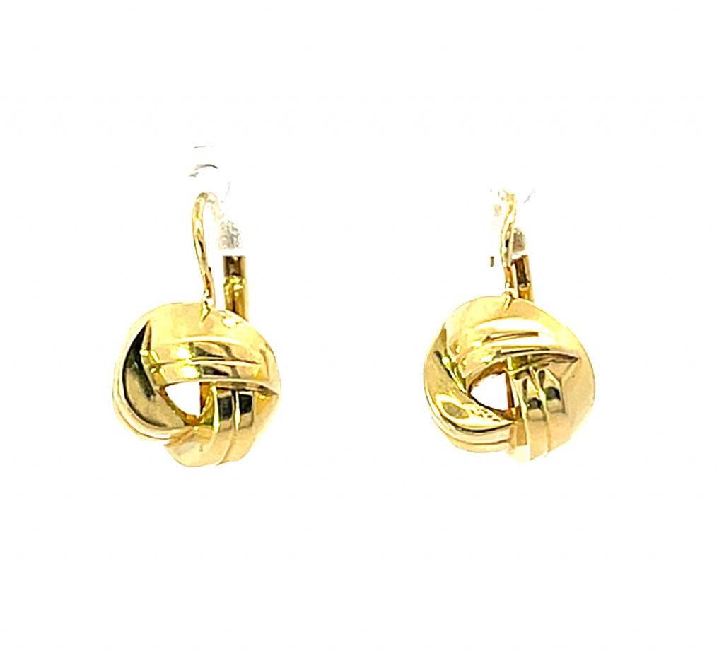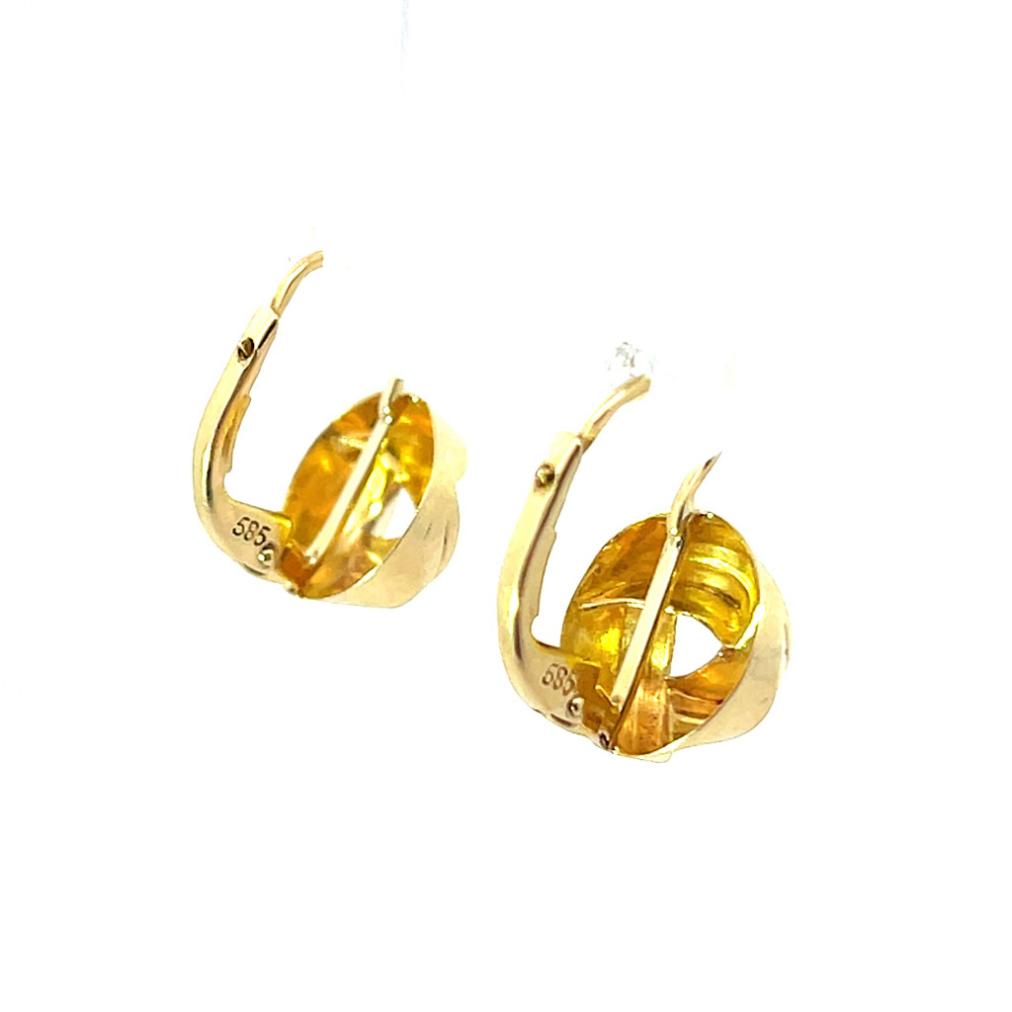 Zlaté náušnice o ryzosti 585/1000, punc labuť. Váha 1,53 g, výška 14 mm, průměr ozdoby 9,5 mm.