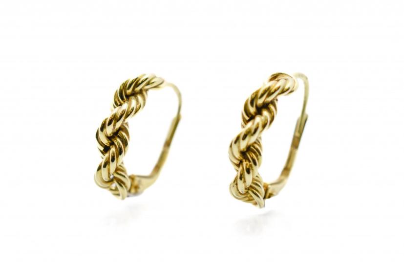 Zlaté náušnice o ryzosti 585/1000, punc labuť. Váha 1,90 g, výška 16 mm, v nejširším bodě 4 mm.