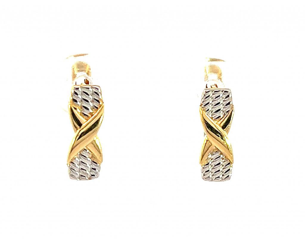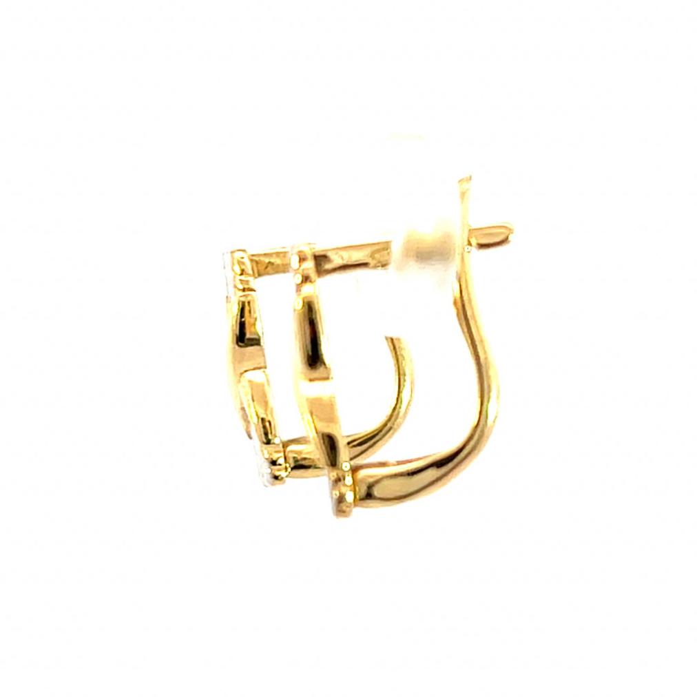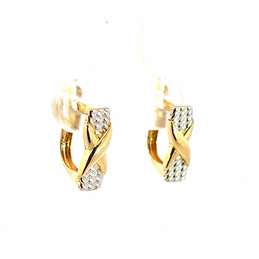 Náušnice z kombinace žlutého a bílého zlata o ryzosti 585/1000, punc labuť. Váha 1,48 g, výška 12 mm, v nejširším bode 4,5 mm.