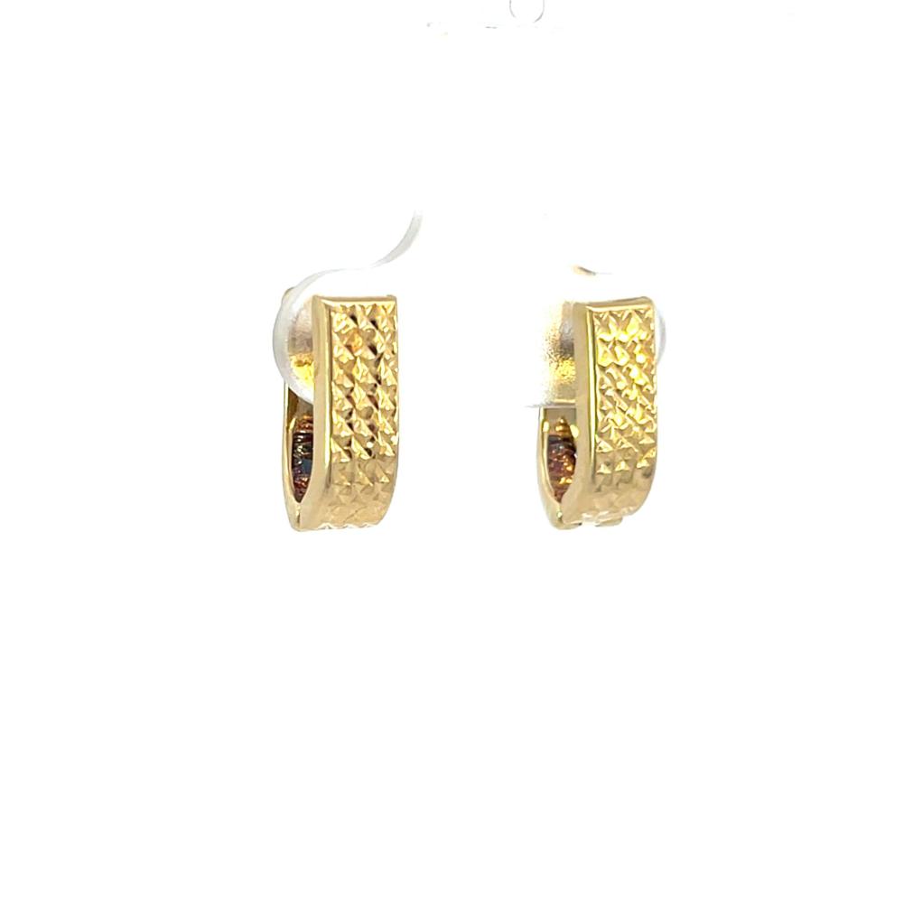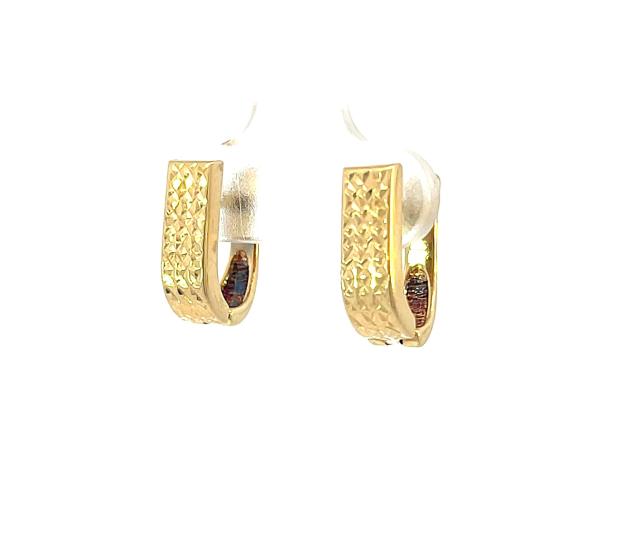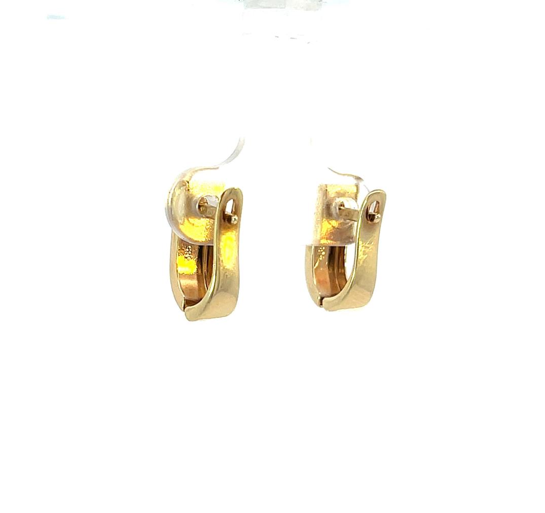 Zlaté náušnice o ryzosti 585/1000, punc labuť. Váha 2,0 g, výška 15 mm, v nejširším bodě 5 mm.
