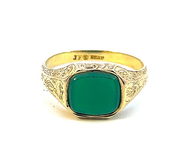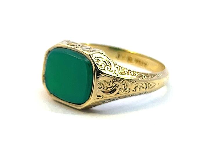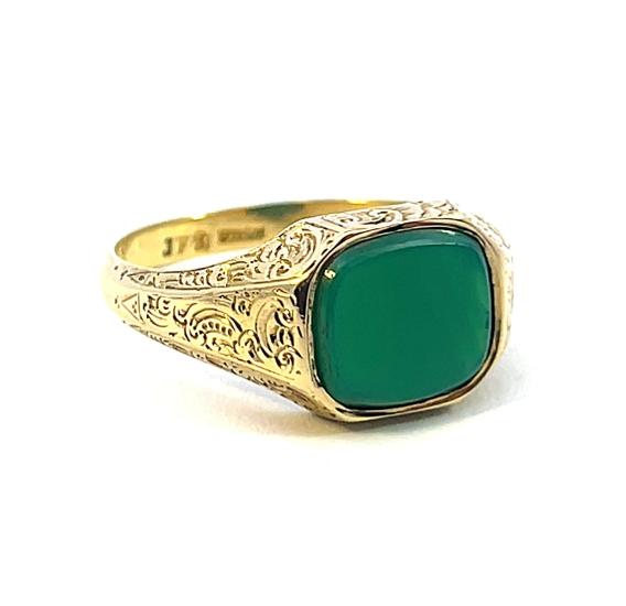 Pánský zlatý prsten s chryzoprasem, vel. 65