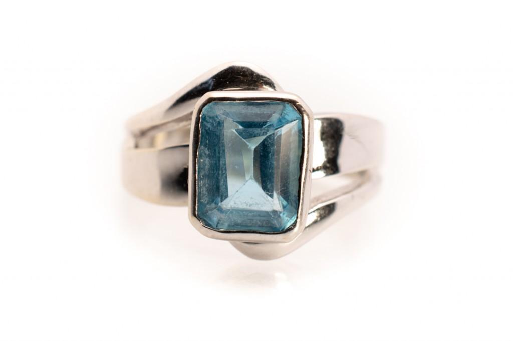 Prsten z bílého zlata s topazem, vel. 52