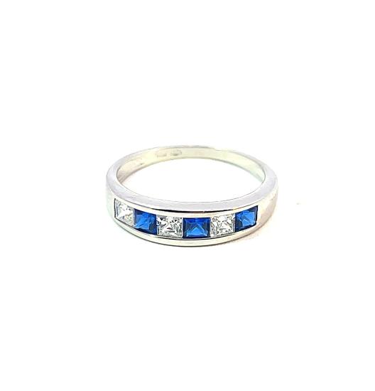 Prsten z bílého zlata se safíry a zirkony, vel. 56