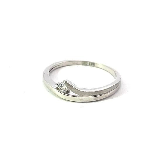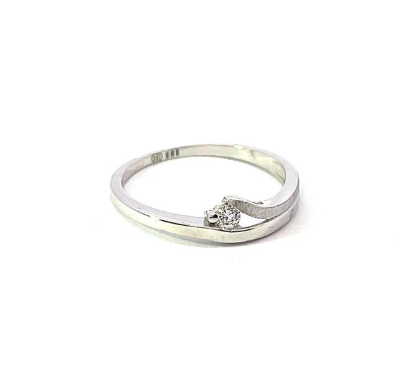 Prsten z bílého zlata o ryzosti 585/1000, punc labuť. Váha 1,64 g, velikost 53, v nejširším bodě 5 mm.