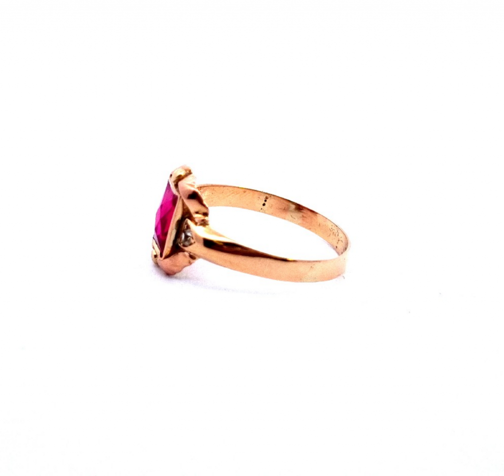 Prsten ze žlutého zlata o ryzosti 585/1000 s puncem labuť. Obdélníkový rubín rámuje florální ornament a po jeho bocích jej zdobí dva malé zirkony. Velikost prstenu je 61. Hlava prstenu v nejvyšším bodě měří 12 mm, v nejširším bodě 14 mm. Rozměry rubínu jsou 7 x 5 mm. Váha prstenu je 3,03 g. Kameny jsou syntetické.