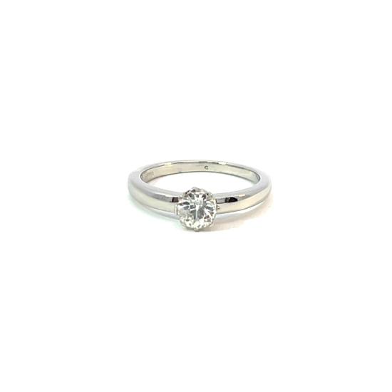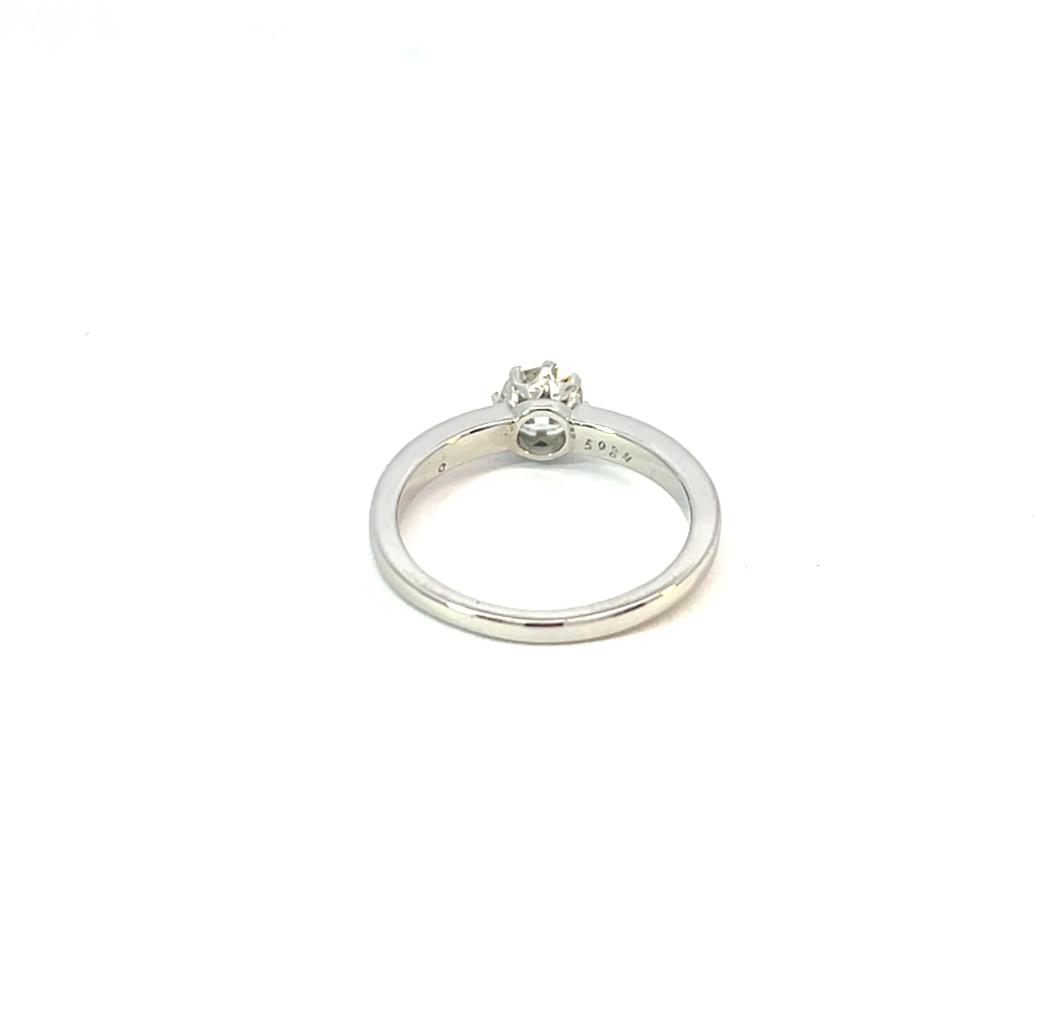 Platinový prsten o ryzosti 950/1000, platná puncovní značka P-05 (používaná od roku 1941 pro staré zboží). Váha 4,19 g, velikost 51, v nejširším bodě 6 mm. Kámen - přírodní diamant staroevropského brusu - 1 ks, cca 0,28 ct.
