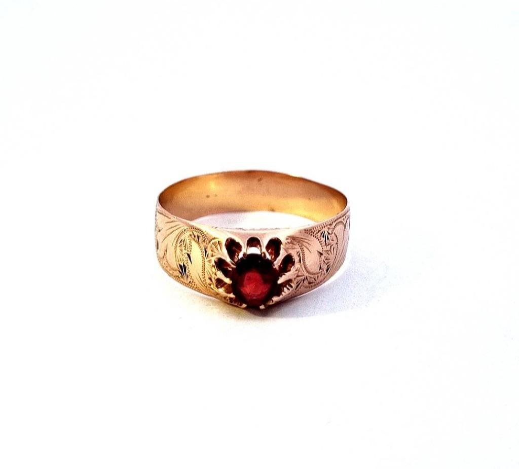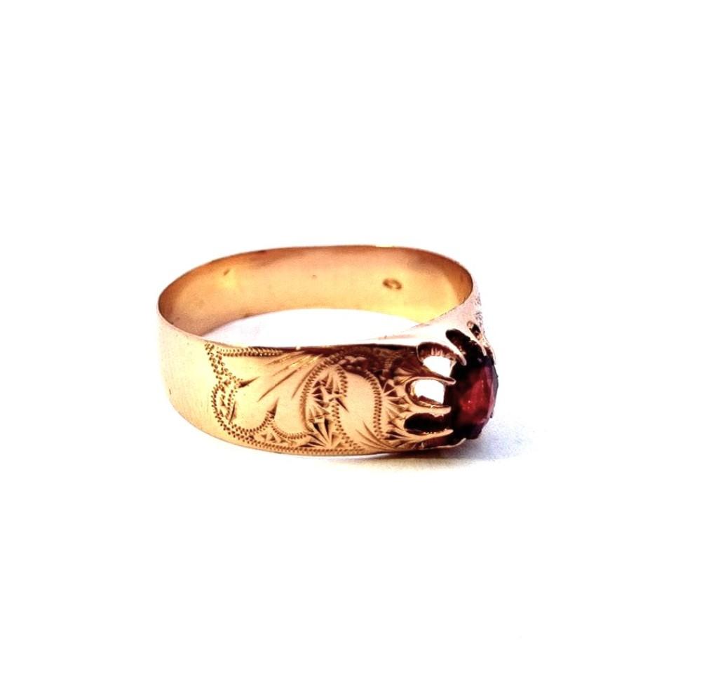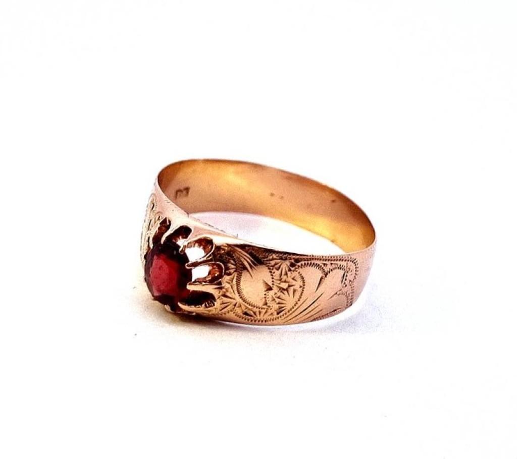 Starožitný zlatý prsten s almandinem, Rakousko-Uhersko, vel. 64