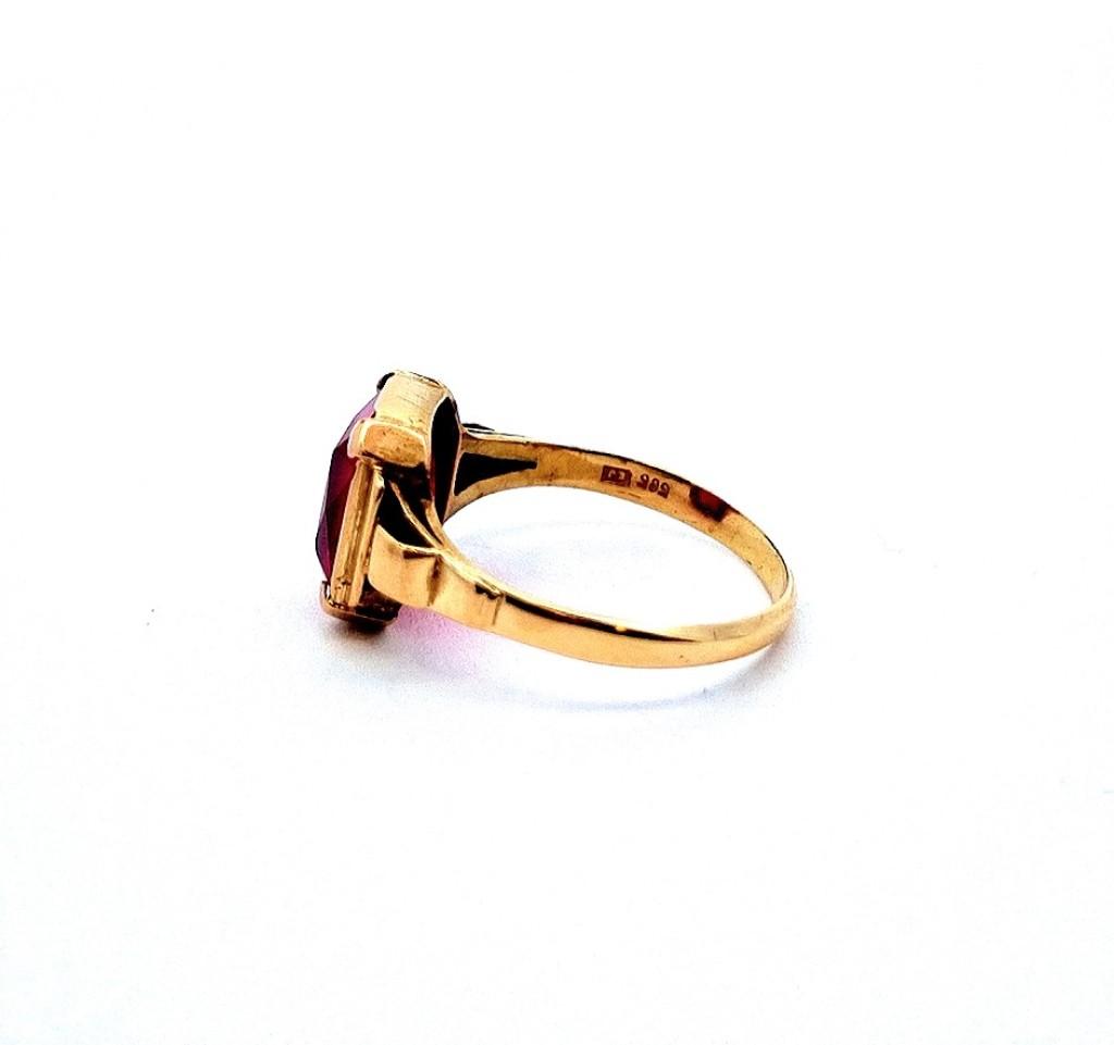 Starožitný zlatý prsten s červeným kamenem - rubín, vel. 55