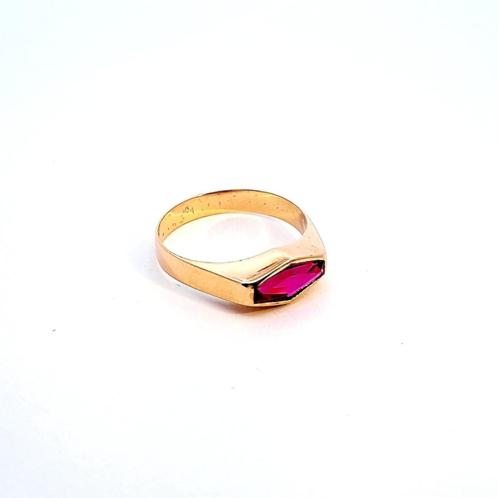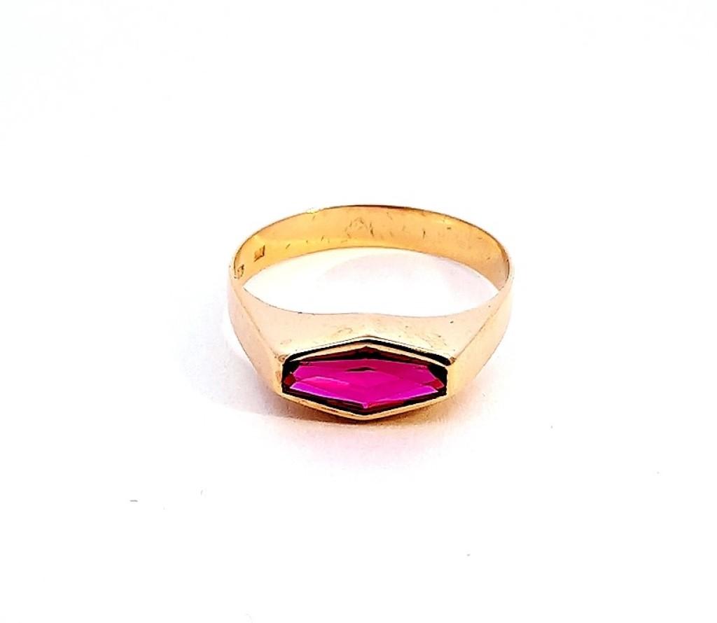 Starožitný zlatý prsten s červeným kamenem, vel.58