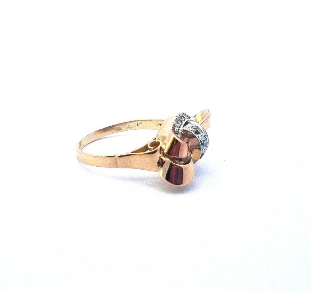 Zlatý prsten o ryzosti 585/1000, punc lvíček. Velikost 59, váha 4,88 g, v nejširším bodě 12 mm.