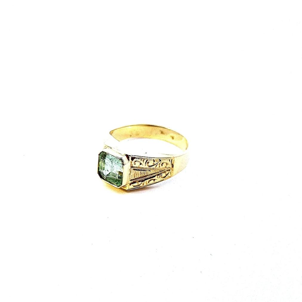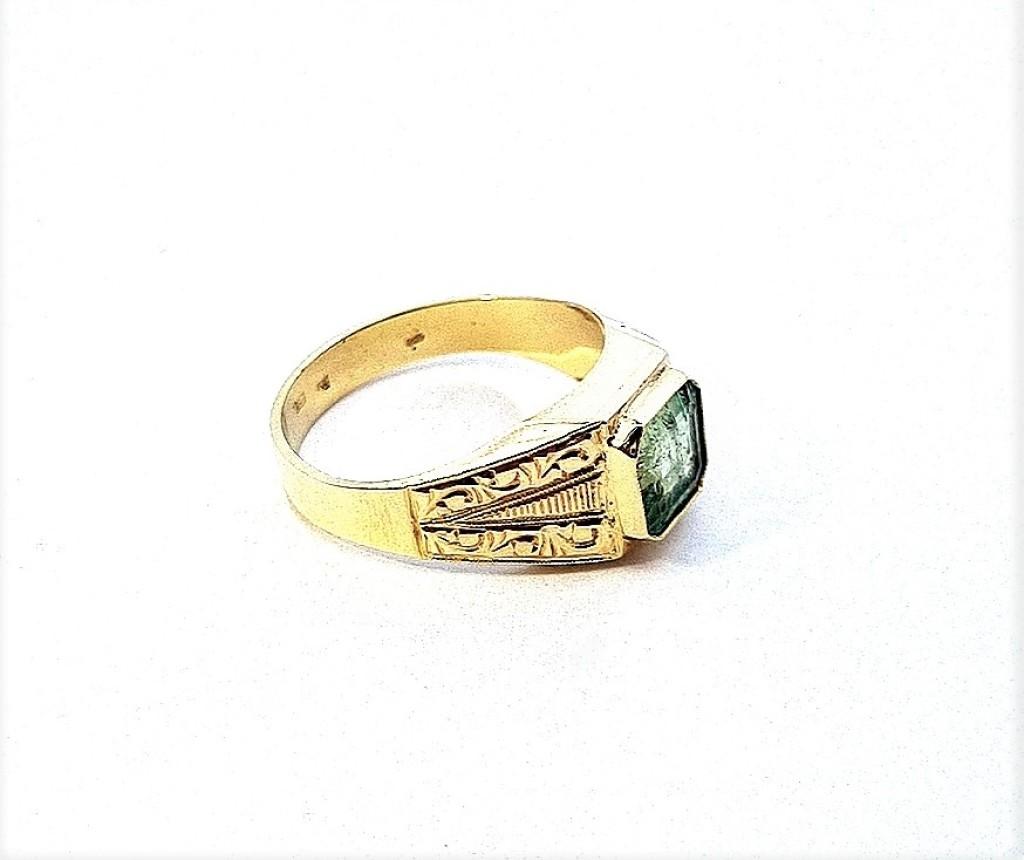 Starožitný zlatý prsten s modrozeleným kamenem, vel. 61