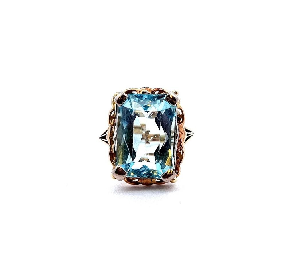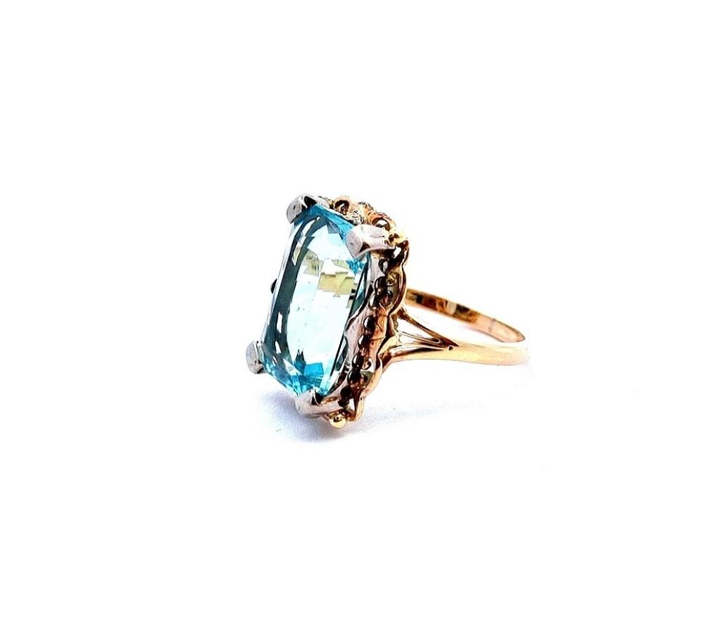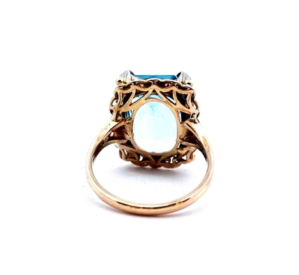 Starožitný zlatý prsten s modrým kamenem - topaz, vel. 54