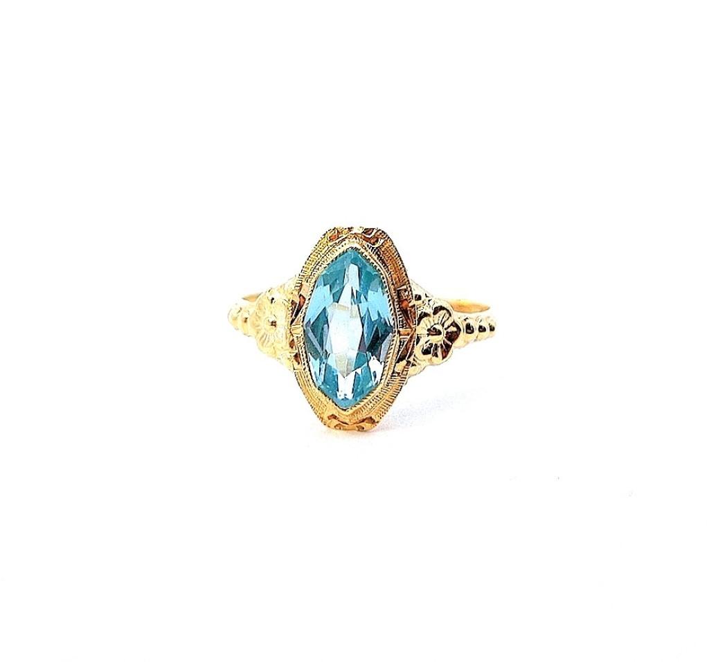 Starožitný zlatý prsten s modrým kamenem - topaz, vel. 55