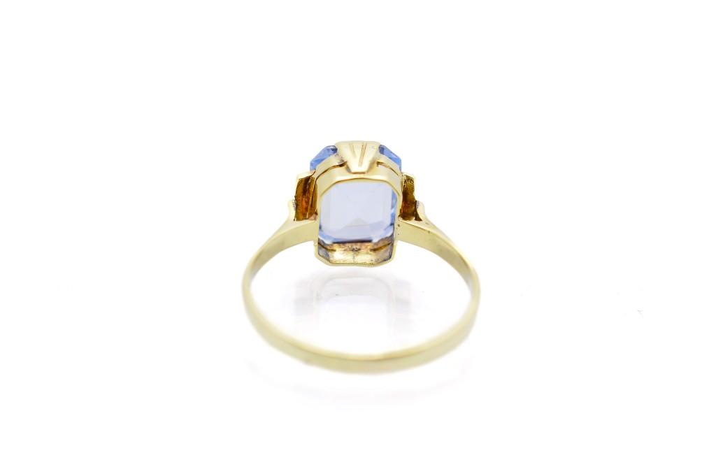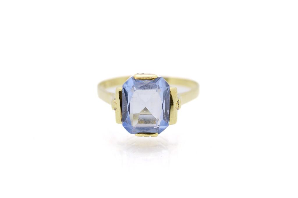 Starožitný zlatý prsten s modrým kamenem - topaz, vel. 57