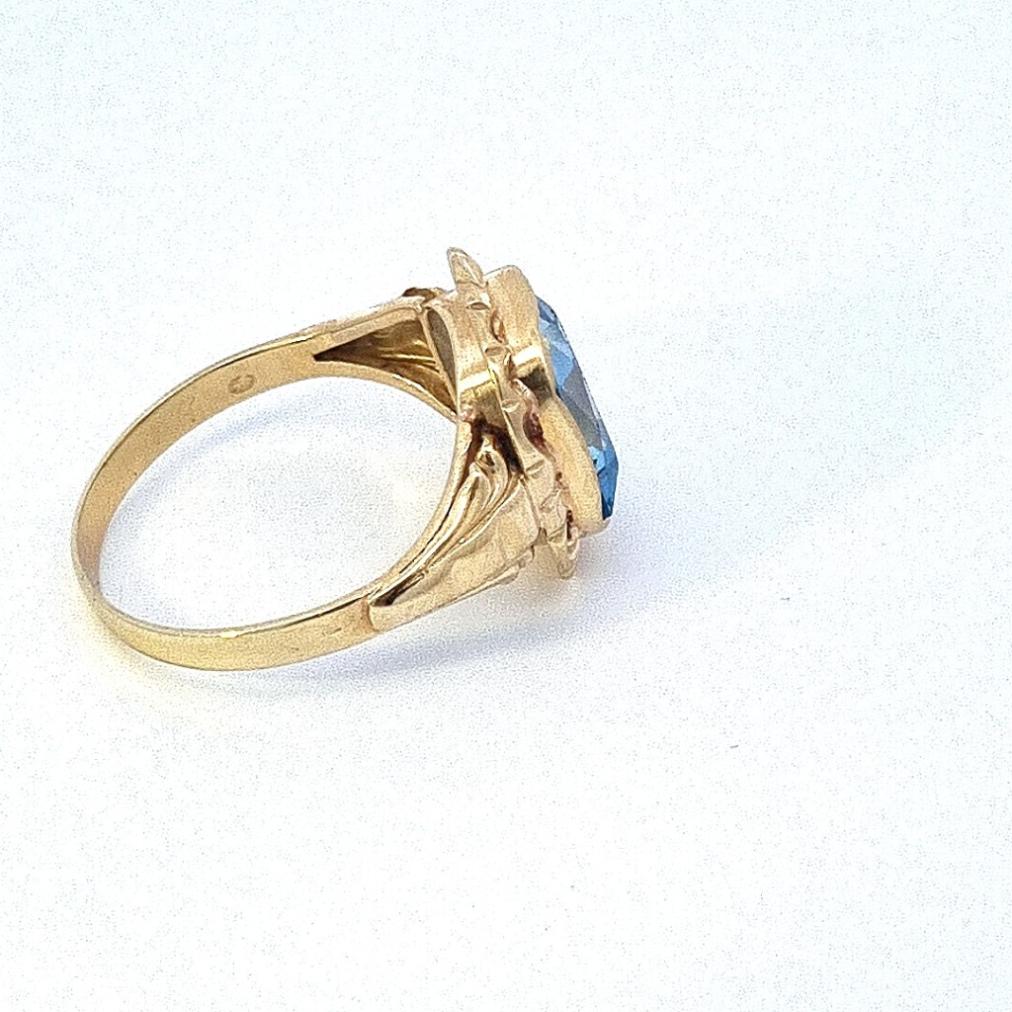 Starožitný zlatý prsten s modrým kamenem - topaz, vel. 58