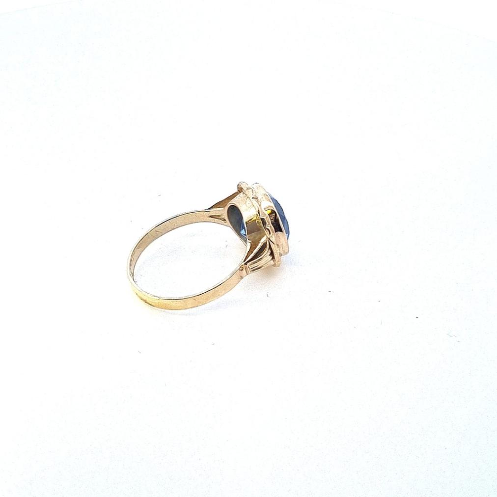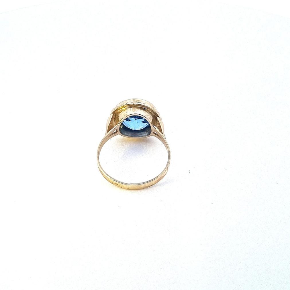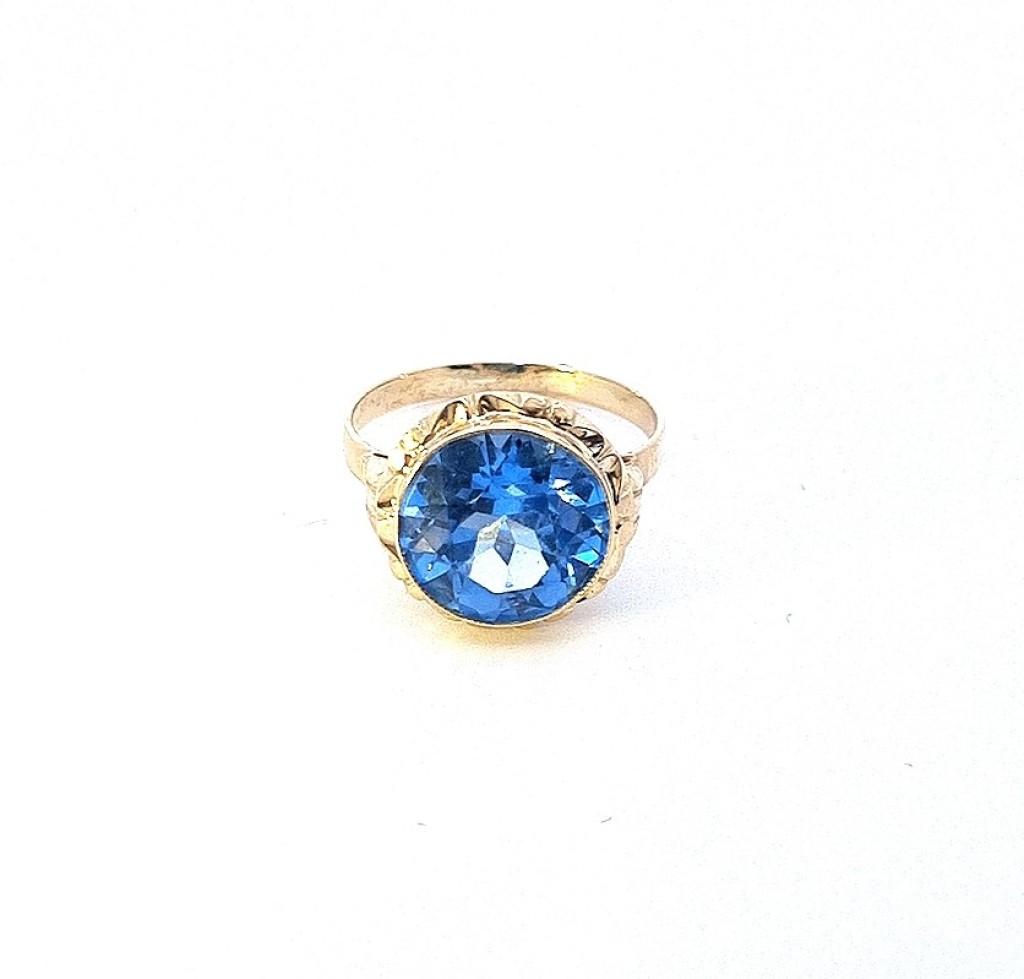 Starožitný zlatý prsten s modrým kamenem - topaz, vel. 58,5