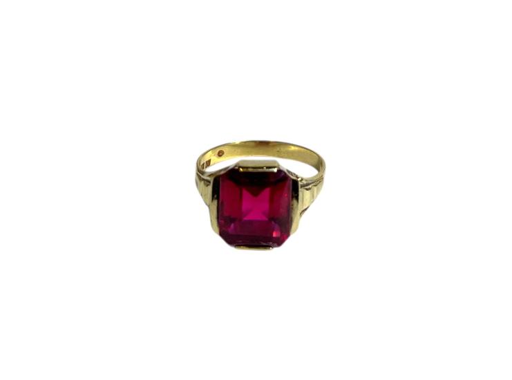 Starožitný zlatý prsten s rubínem, první republika, vel. 58