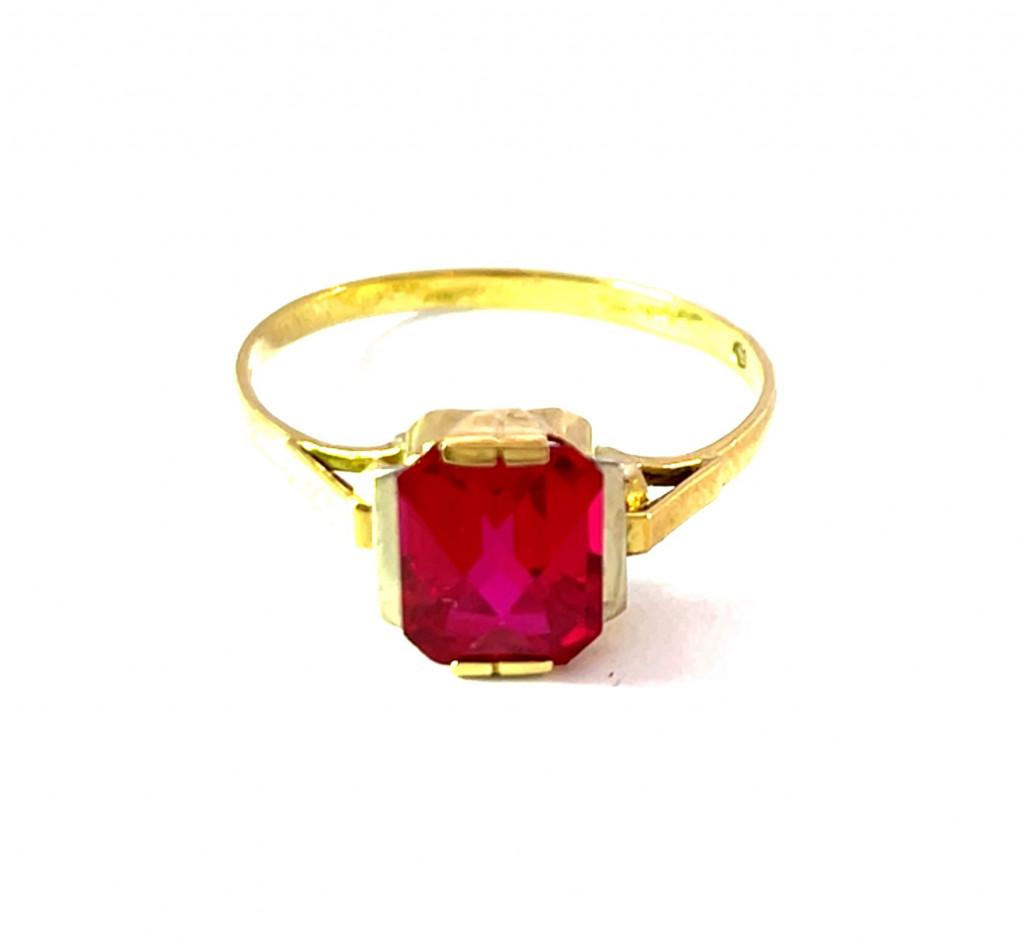 Starožitný zlatý prsten s rubínem, první republika, vel. 60