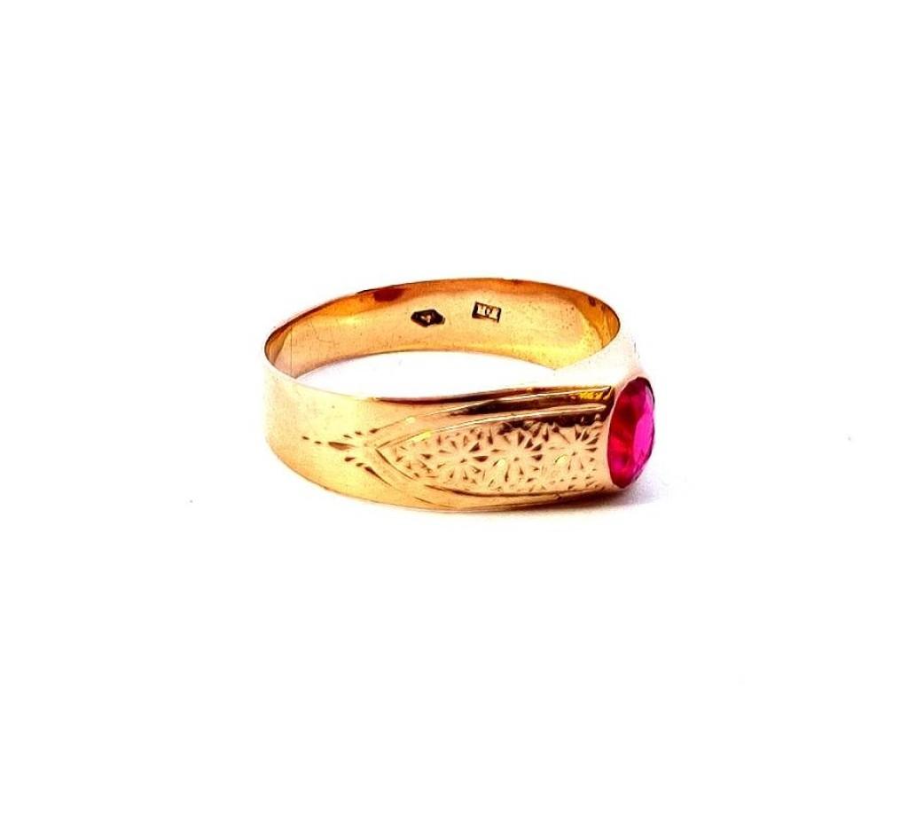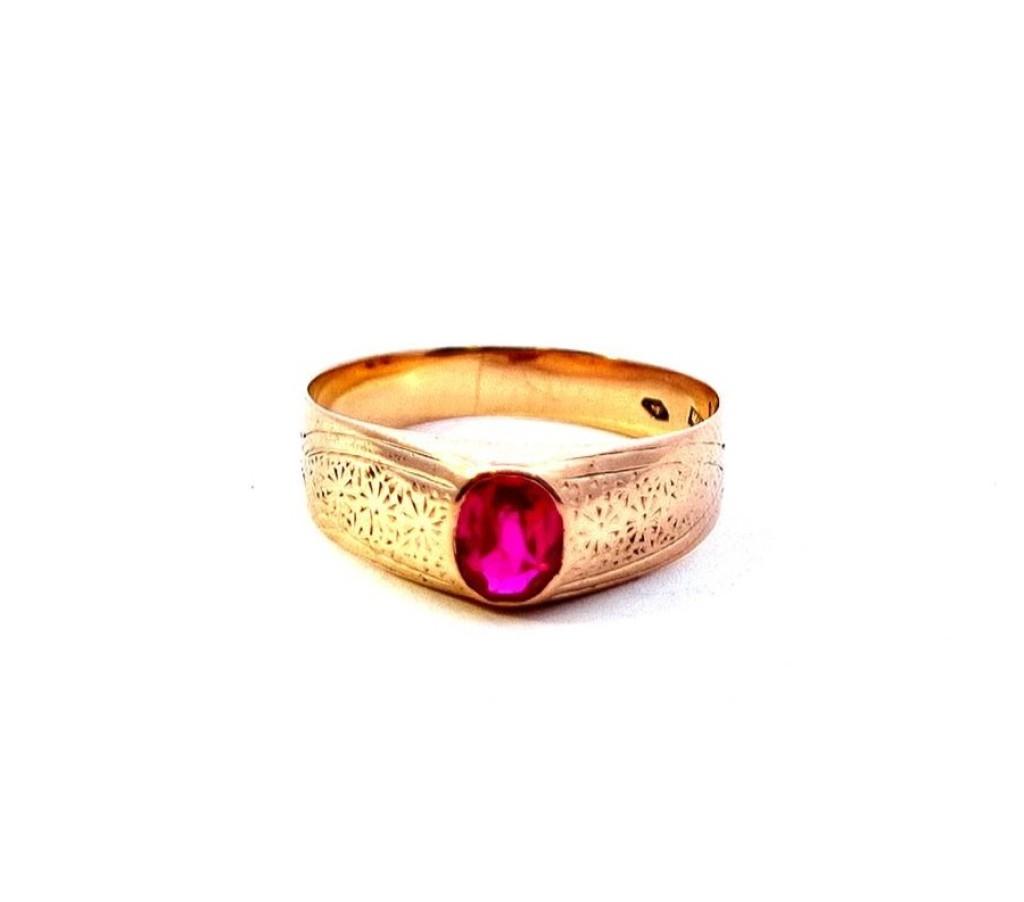 Starožitný zlatý prsten s rubínem, Rakousko-Uhersko, vel. 56
