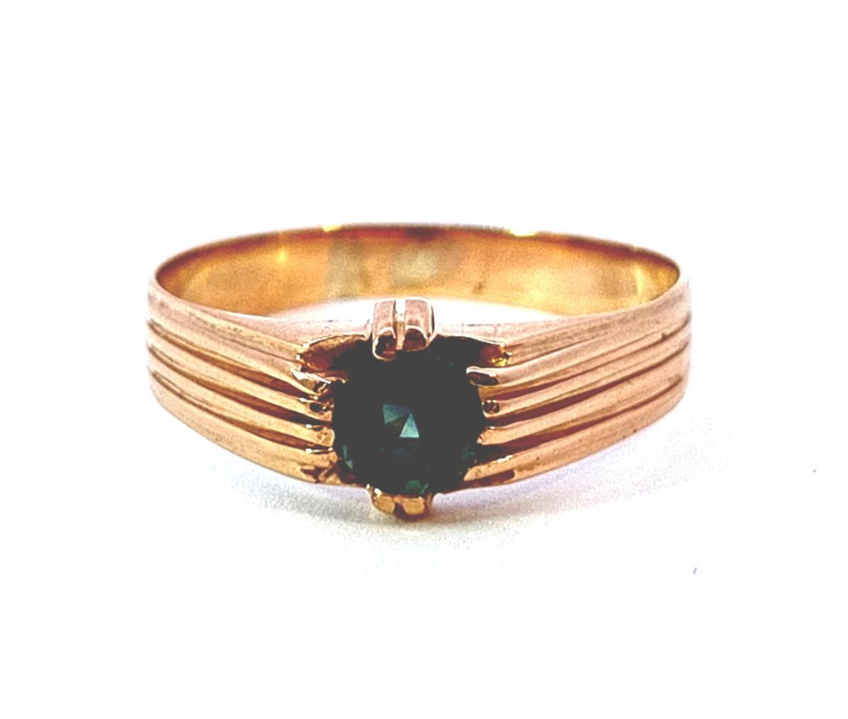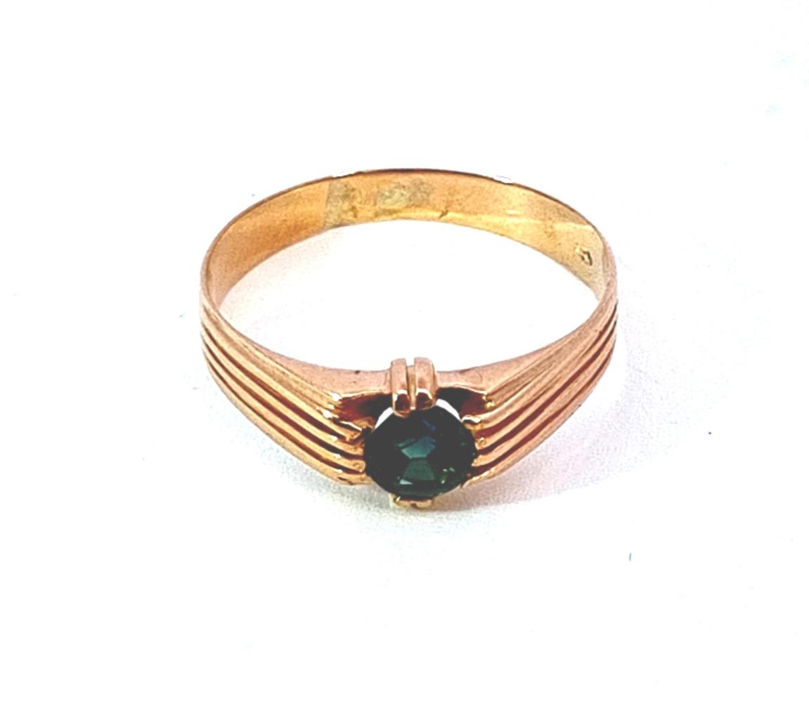 Starožitný zlatý prsten se zeleným kamenem, vel. 56