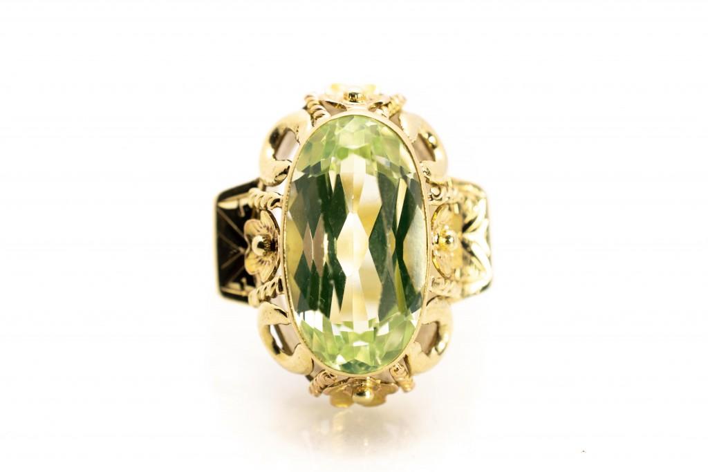 Starožitný zlatý prsten se zeleným kamenem, vel. 60