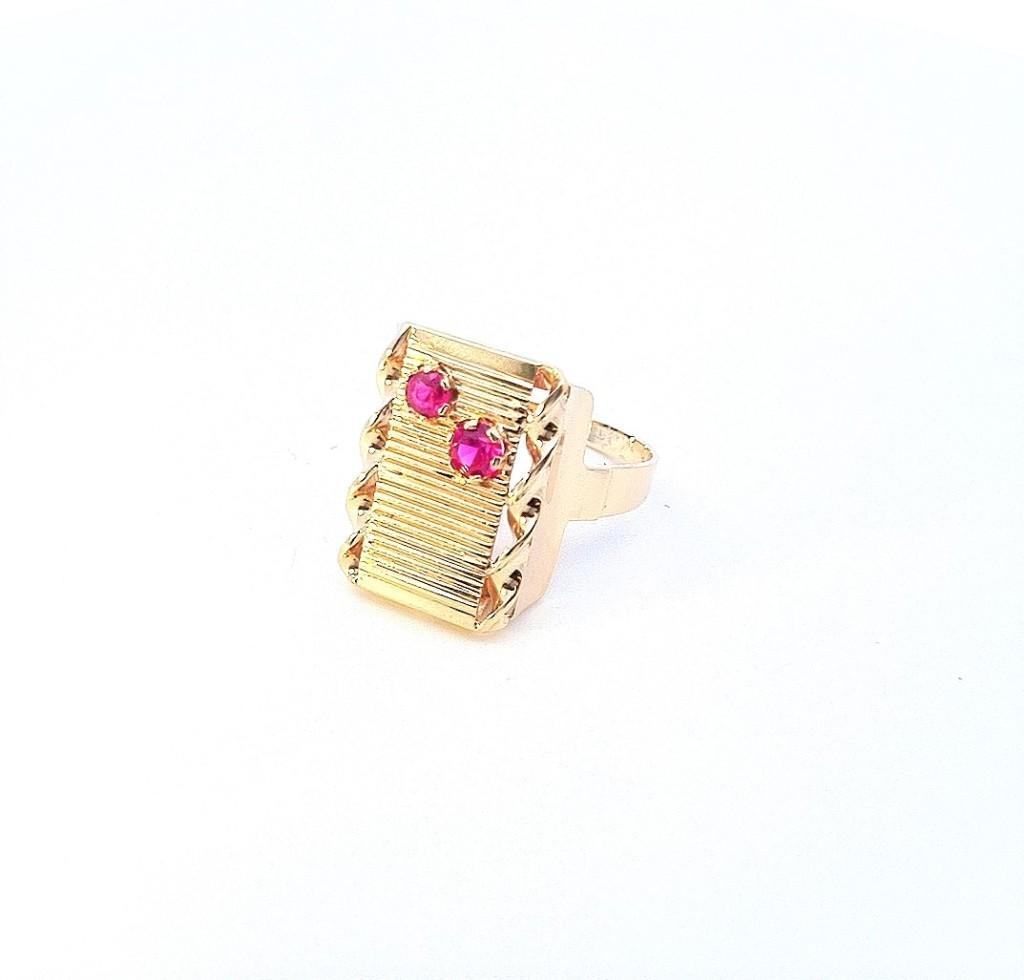 Zlatý pánský prsten s červenými kameny - rubín, vel. 58