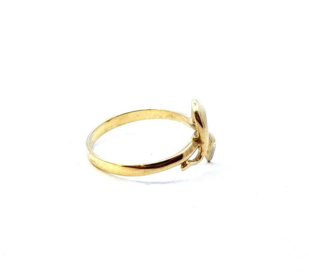 Zlatý prsten o ryzosti 585/1000, punc čejka. Váha 2,28 g, velikost 54, v nejširším bodě 13 mm.