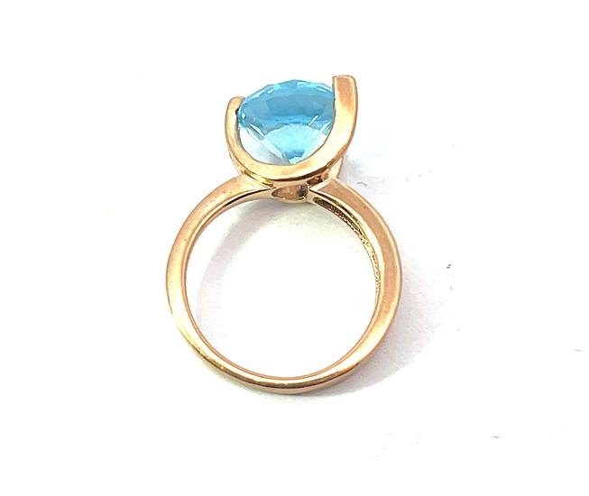 Prsten ze zlata o ryzosti 585/1000 punc labuť, zdobený velkým světle modrým kamenem. Váha prstenu je 5,10 g, velikost 55. Šina se z jedné strany na druhou rozšiřuje a má v nejširším bodě 3 mm a v nejužším bodě 1,5 mm. Průměr kamene je 11 mm a je syntetický a lehce kloktá.