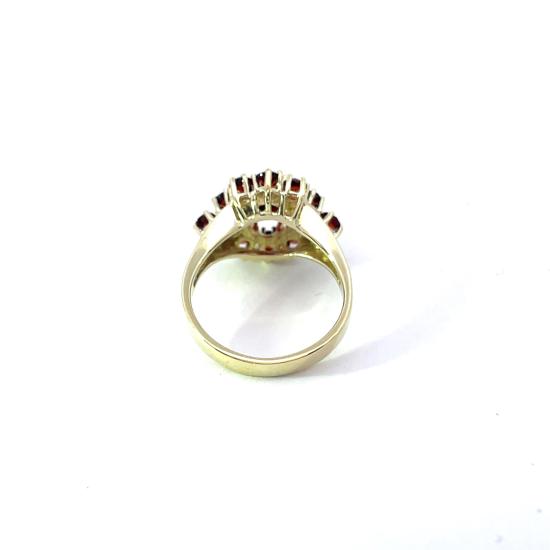 Zlatý prsten o ryzosti 333/1000, punc Z a slunce. Velikost 53, váha 3,78 g, rozměr hlavy prstenu 15 x 18 mm.