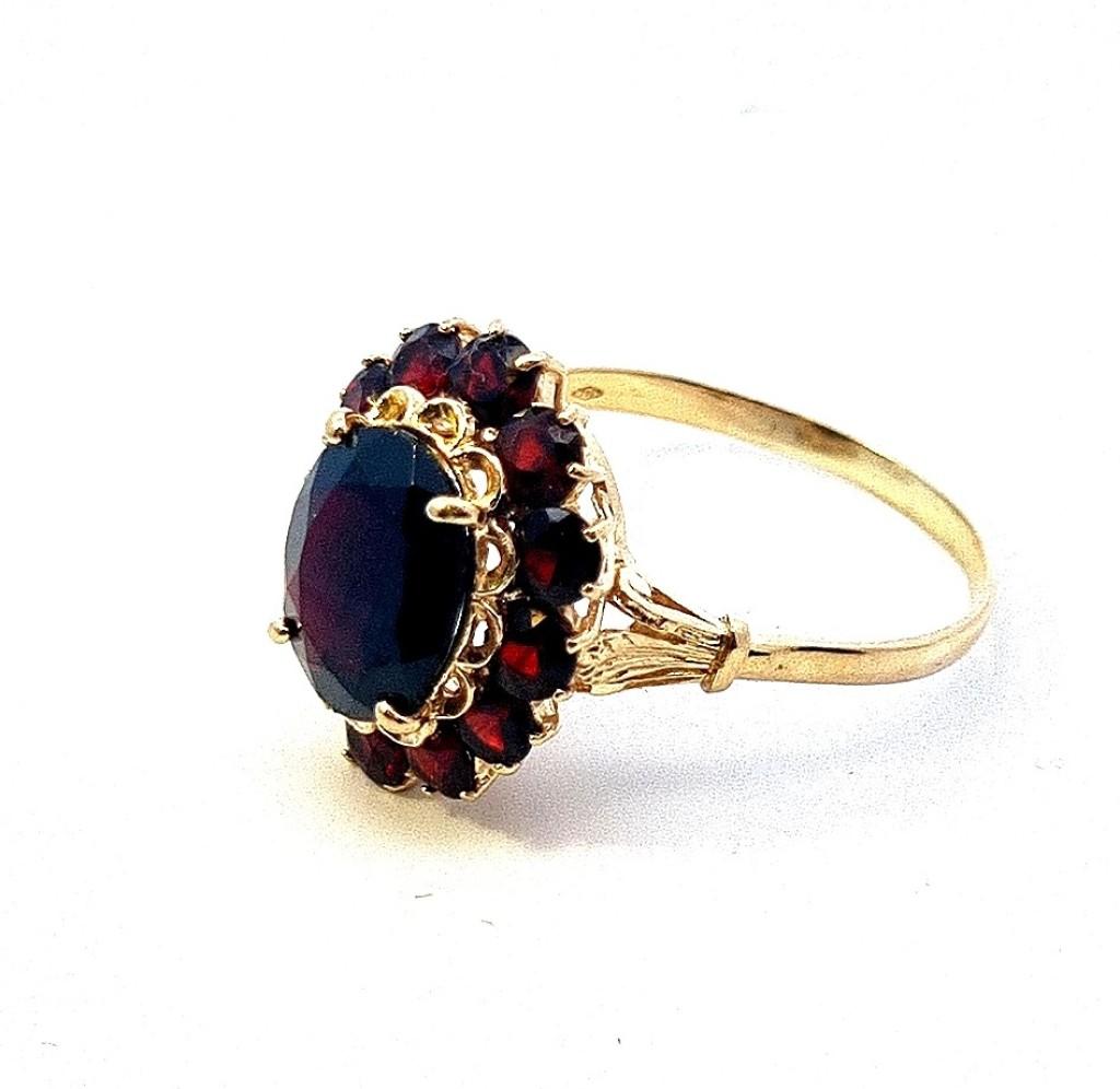 Zlatý prsten o ryzosti 750/1000, punc kohout , váha 6,32 g, velikost 70, v nejširším bodě 20 mm, rozměry ústředního kamene - výška 13 mm, šířka 10 mm.