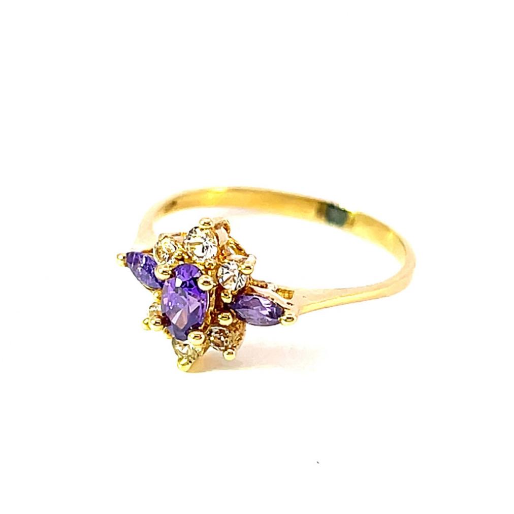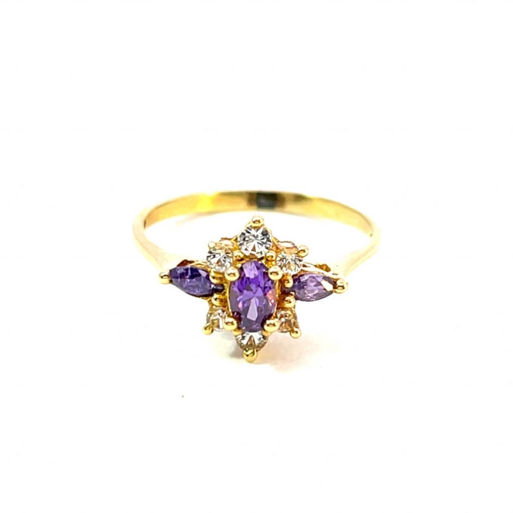 Zlatý prsten s ametysty a zirkony, vel. 52