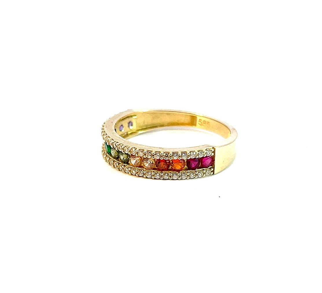 Zlatý prsten s barevnými kameny a zirkony, vel. 55,5