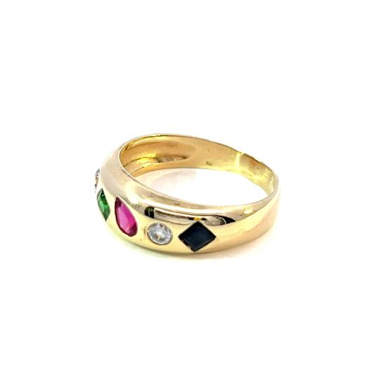 Zlatý prsten s barevnými kameny, vel. 57