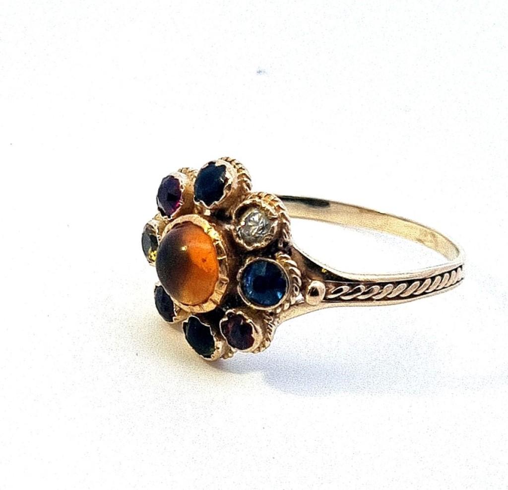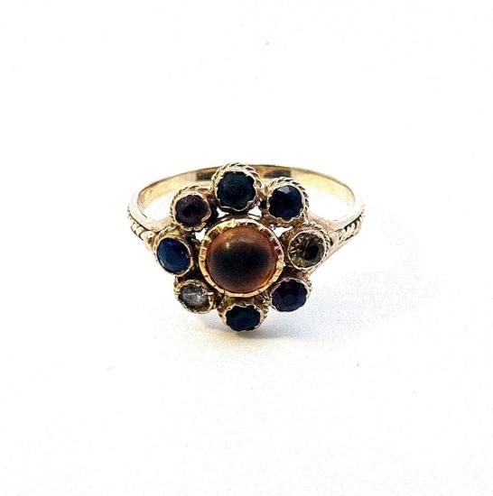 Zlatý prsten s barevnými kamínky, vel. 69