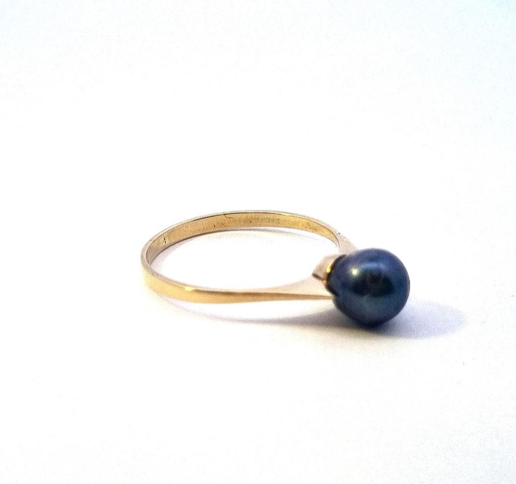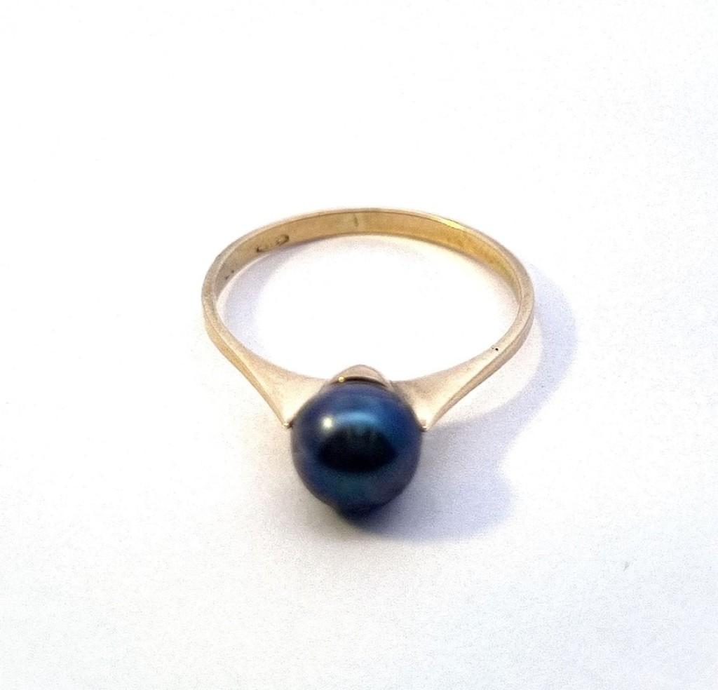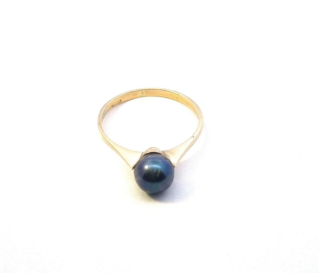 Zlatý prsten s černou perlou, vel. 54