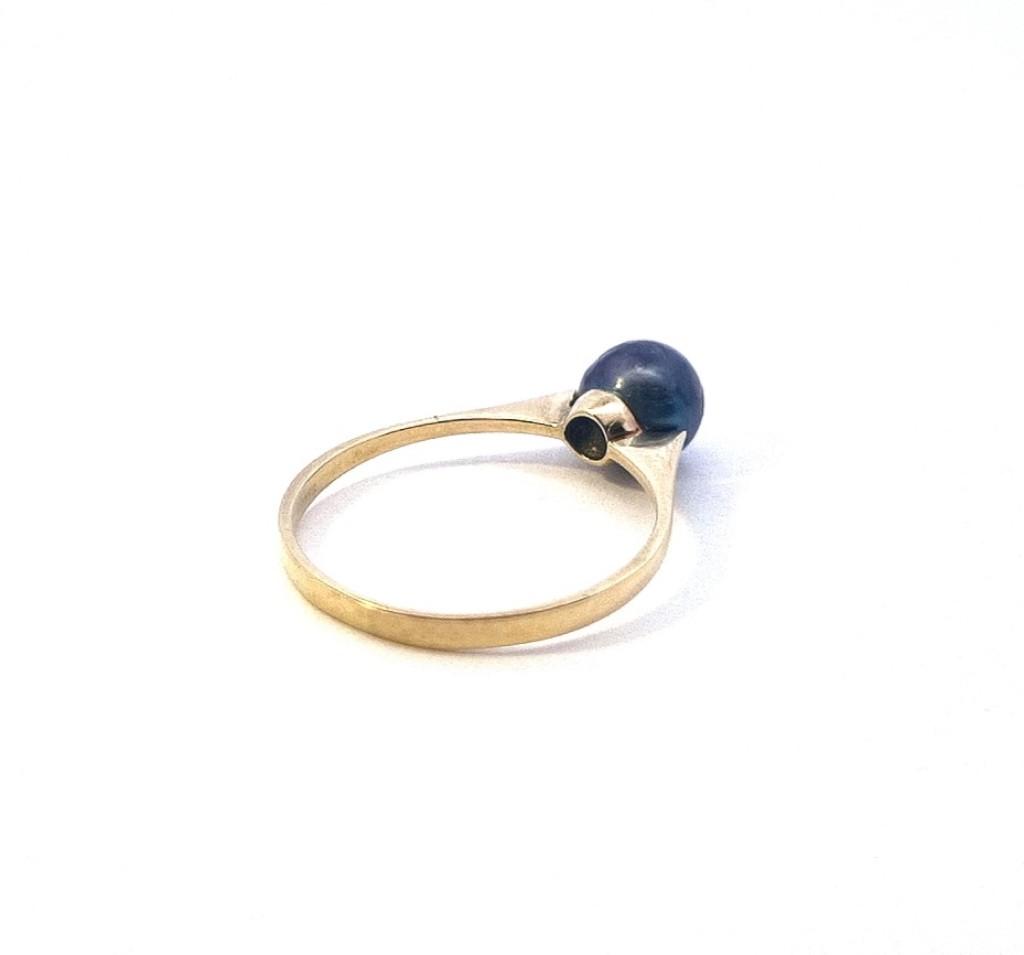 Zlatý prsten o ryzosti 585/1000, punc labuť. Velikost 54, váha 1,54 g, průměr perly 6,5 mm.